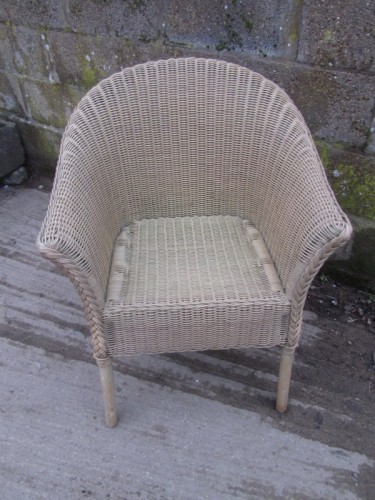 A STURDY ARMCHAIR, IDEAL FOR A CONSERVATORY OR ANYWHERE IN THE HOME. THE FRAME IS STRONG WITH A WOVEN CANE COVERING. SOME CAT CLAW MARKS ON THE FRONT CORNERS. SEAT HEIGHT IS 46cm.