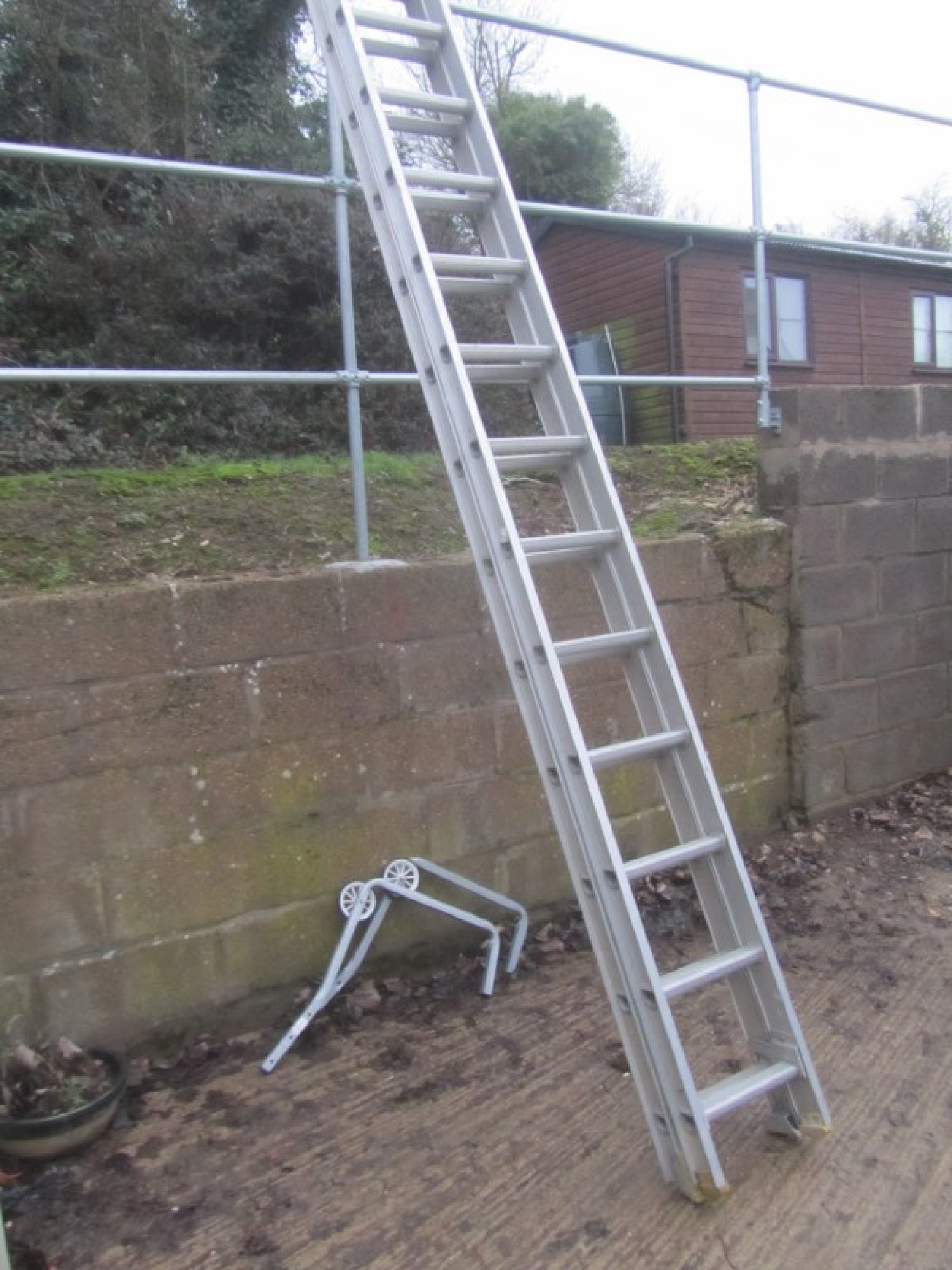 A SET OF LONG LADDERS, THERE ARE 2 SECTIONS, WHEN EXTENDED THEY WILL REACH GUTTERING, WINDOWS etc. A STRONG AND STURDY SET OF LIGHTWEIGHT ALUMINIUM LADDERS. INSTRUCTIONS FOR USE CAN BE FOUND ONLINE.