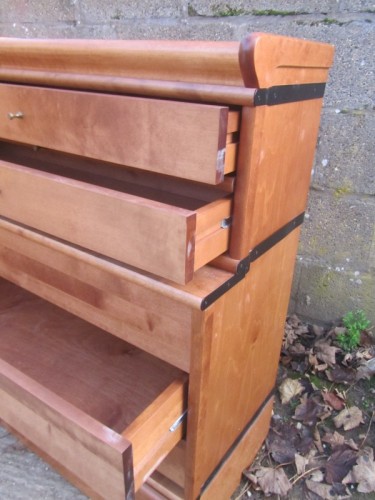 A CHEST OF DRAWERS IN A LIGHT BEECH EFFECT VENEER. ALL DRAWERS RUN SMOOTHLY. EACH SECTION SLOTS TOGETHER, MADE BY QUALITY MAKER 'BOKNAS' FURNITURE. A MODULAR SYSTEM. GOOD QUALITY.