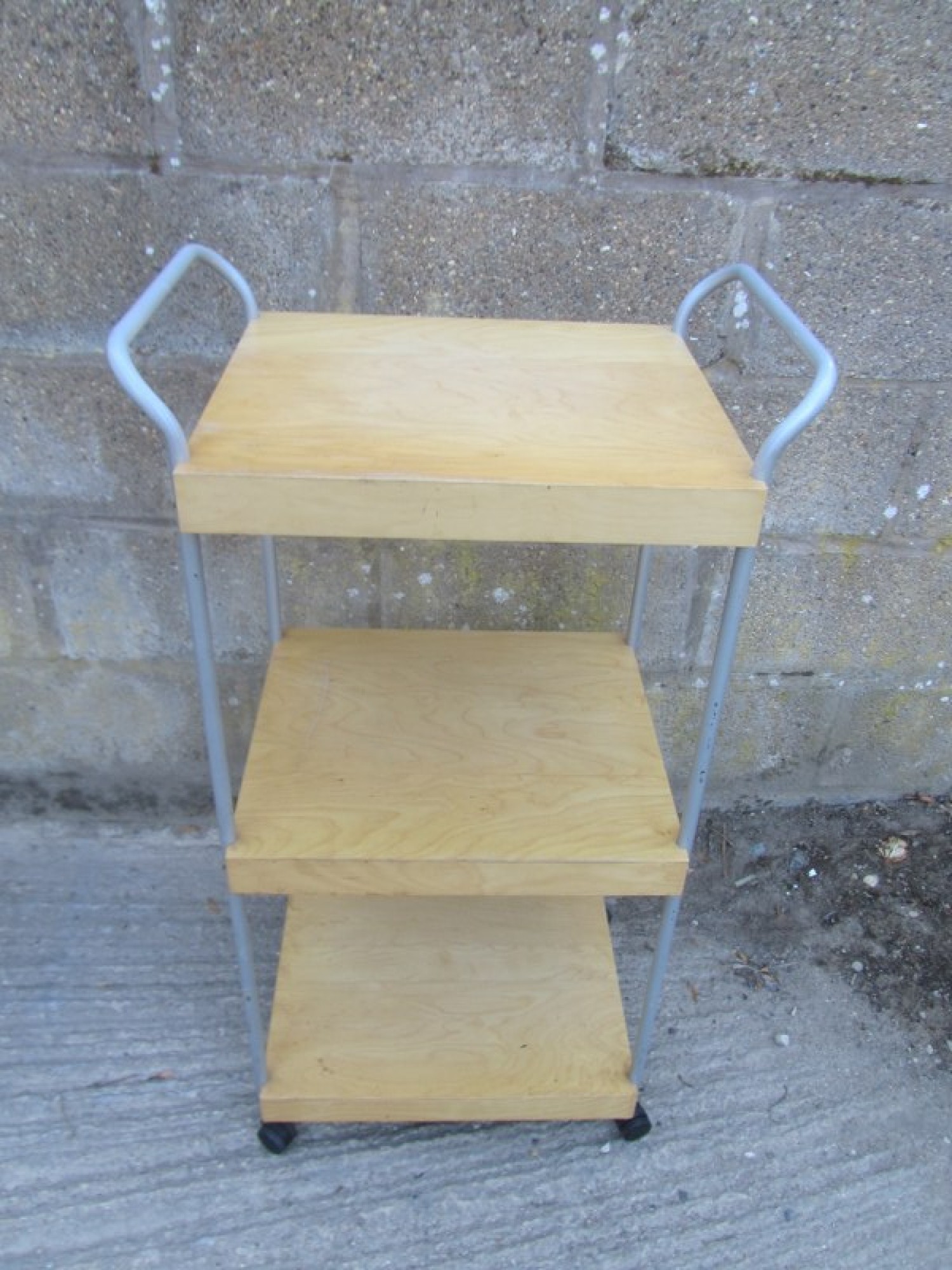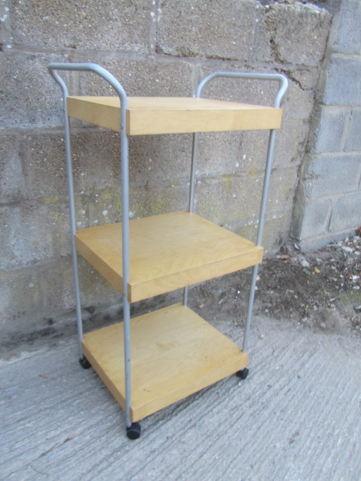 Items for Sale MODERN METAL & BEECH EFFECT TALL TABLE / TROLLEY Share: View Larger Image View Larger Image Select to enlarge £ 20 A BEECH EFFECT TALL TABLE ON A STURDY METAL FRAME. ADDITIONAL DETAILS RESERVE ITEM Condition:GOOD Manufacture Date:2000s Height:102 cms Length:56 cms Depth:40 cms Quantity:1 Item Number:40123 * Please complete all the fields below to send an enquiry about this product. Please reserve this item for me… Reset Send