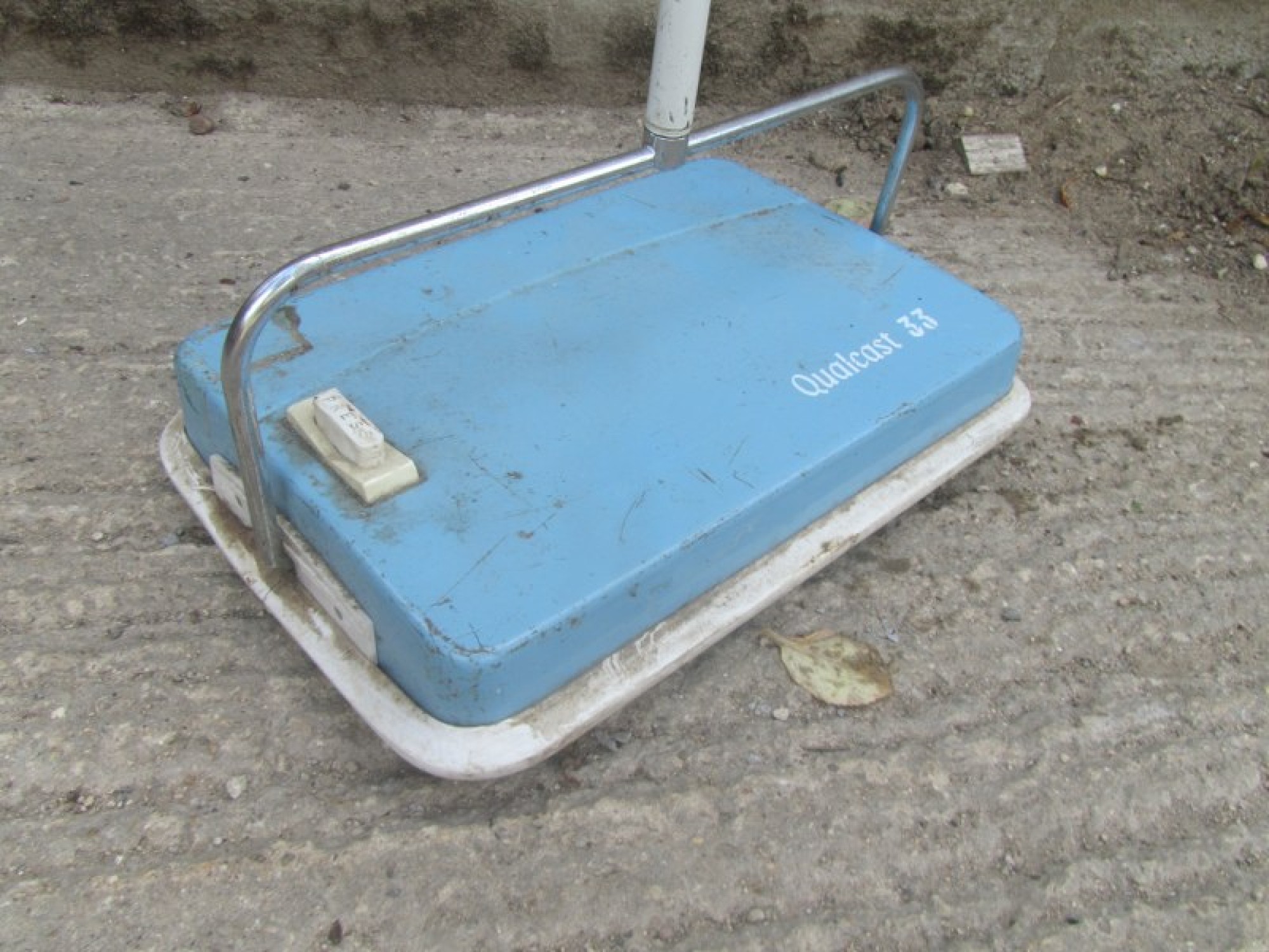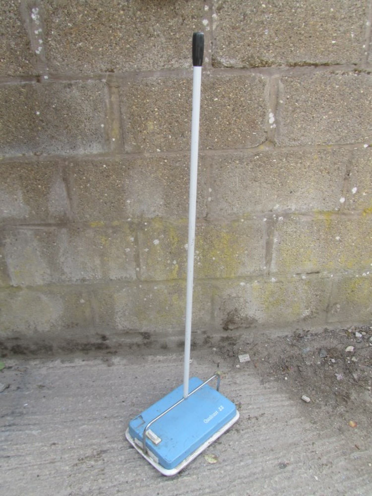 A VINTAGE PUSH ALONG SWEEPER, LIGHTWEIGHT AND EASY TO USE. IDEAL PROP.