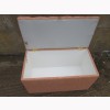 A FOOTSTOOL WITH A PADDED TOP. THE LID LIFTS UP, STORAGE SPACE INSIDE.