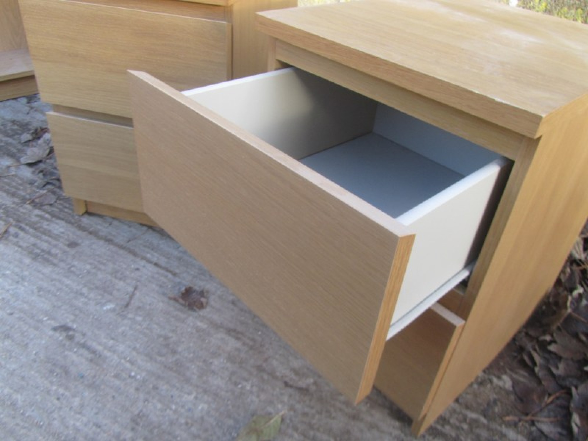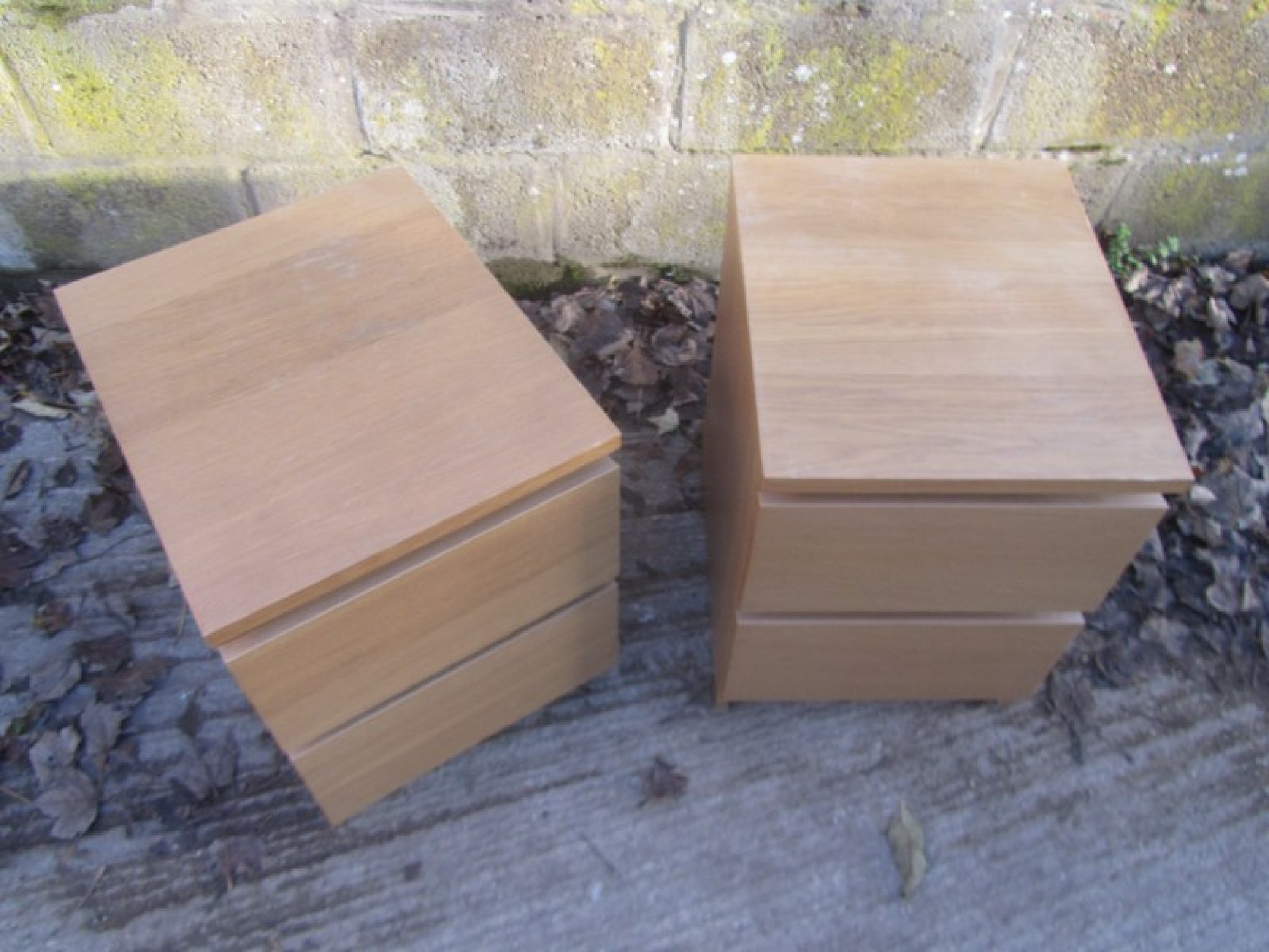 A MODERN CHEST OF DRAWERS. IT IS IN AN OAK VENEER AND IN GOOD CONDITION. SOLD AS A PAIR.
