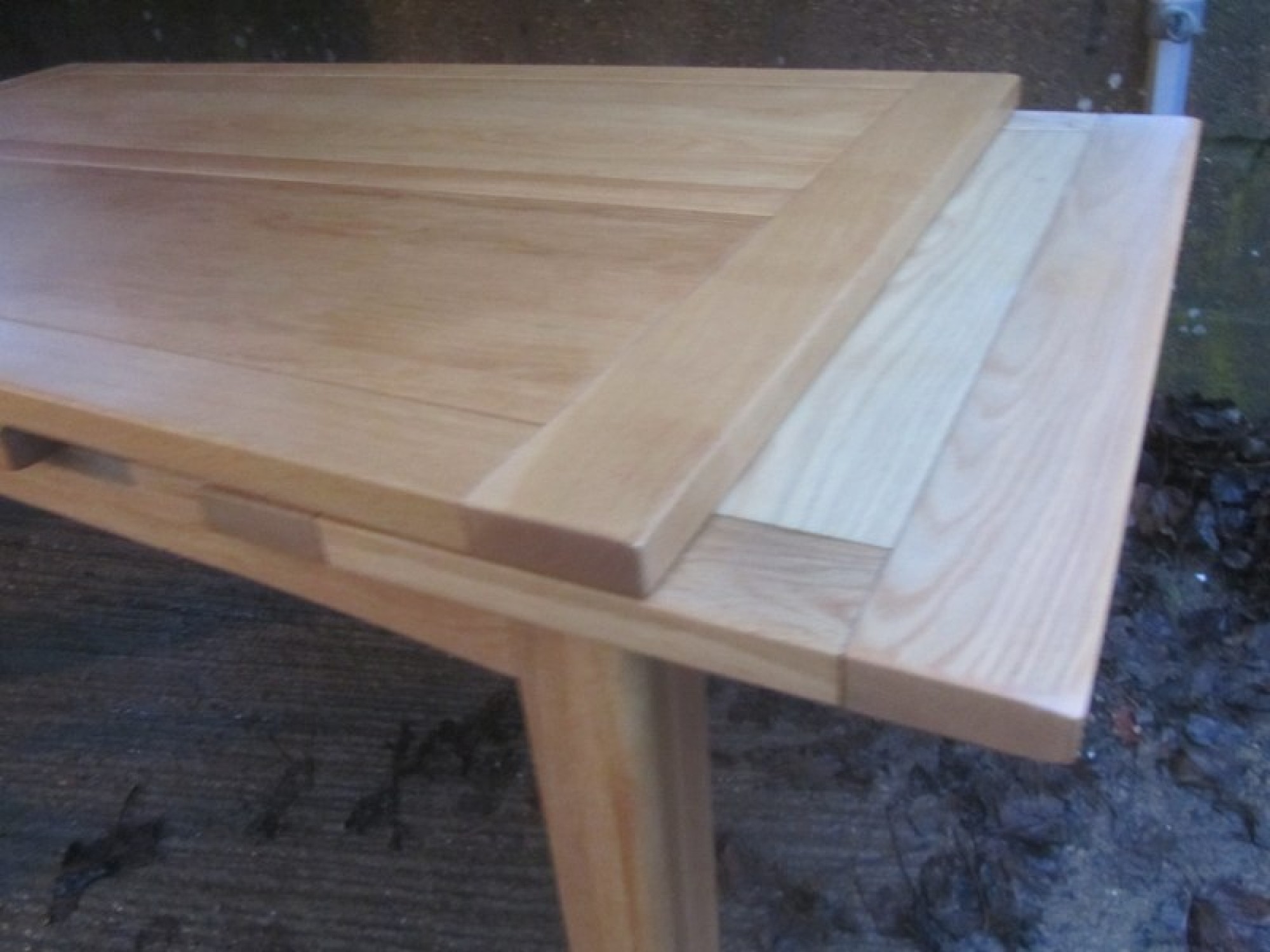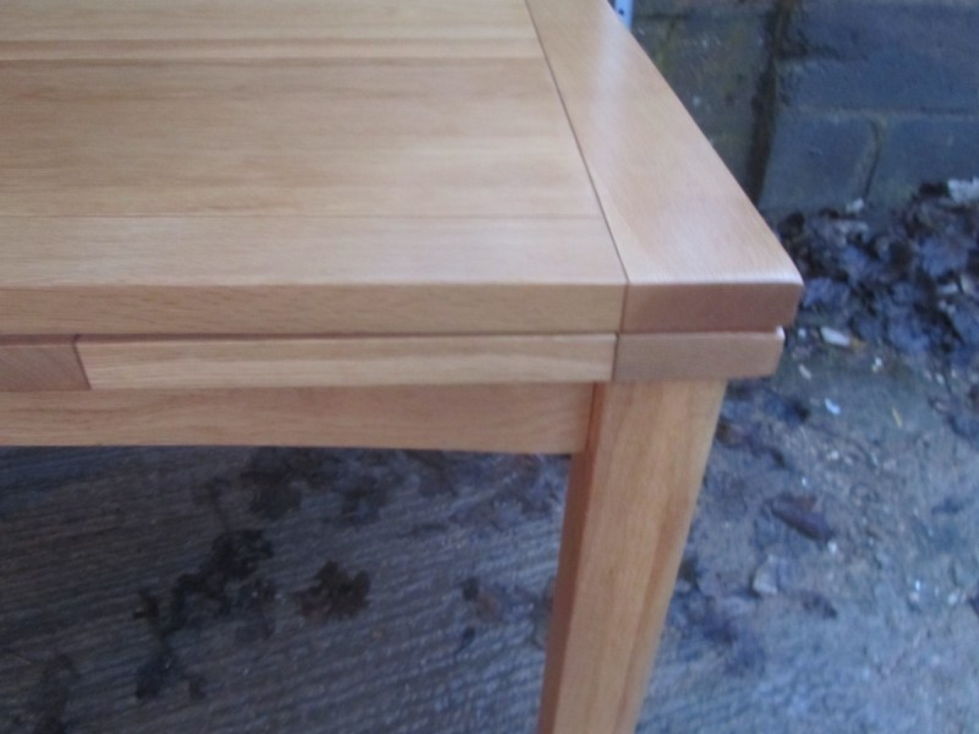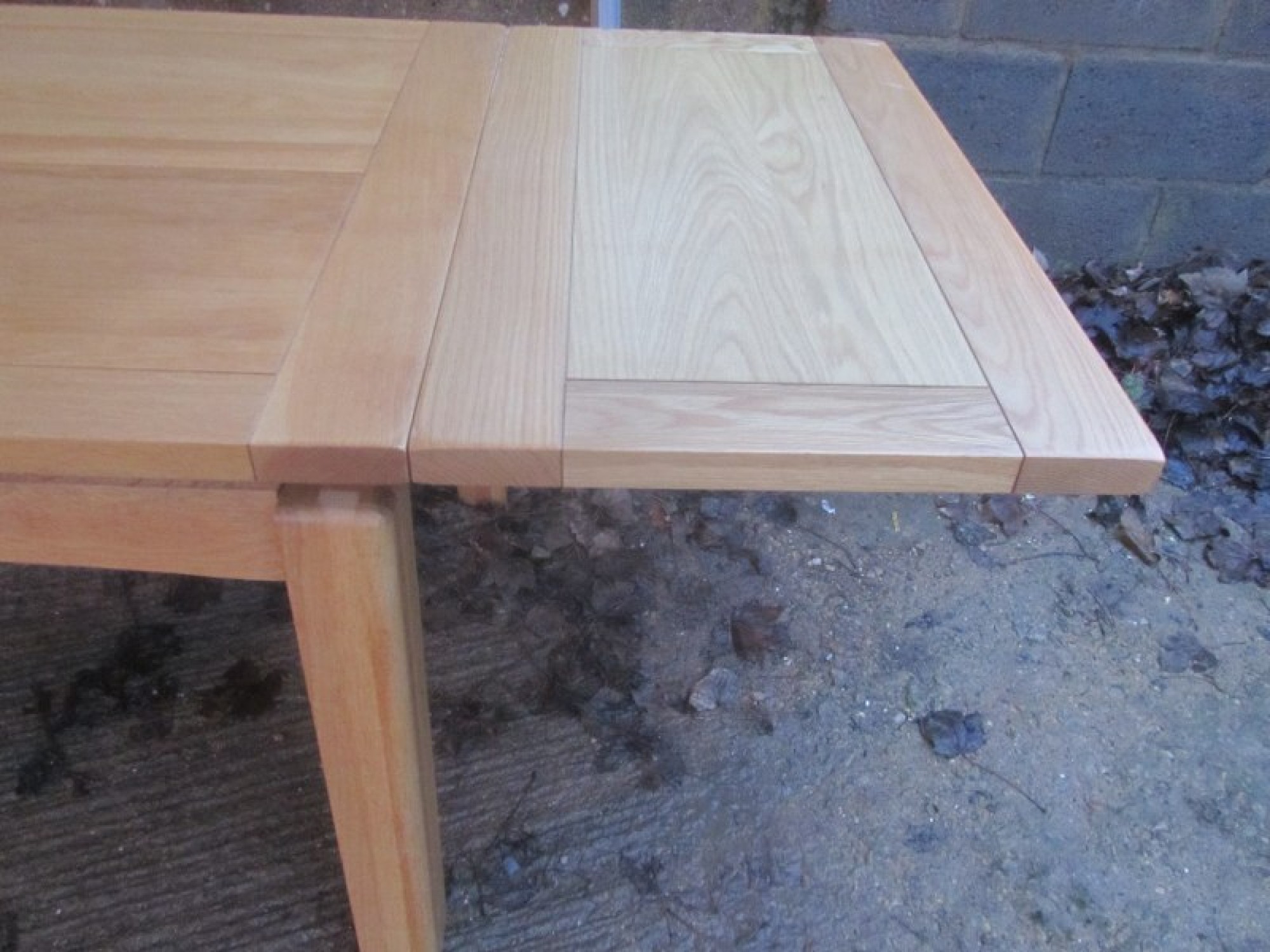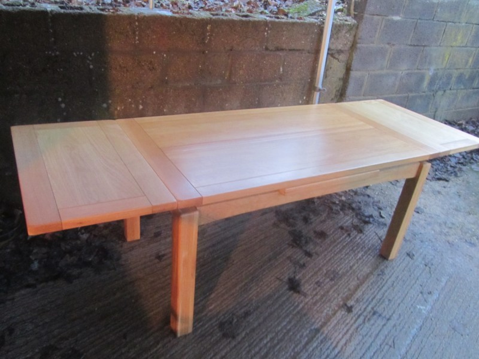 THE TABLE HAS REMOVABLE LEGS, THE TOP IS IN AN OAK VENEER. IT SEATS 6 - 8 DINERS, WITH A SLIDE OUT LEAF EACH SIDE. TABLE MEASUREMENTS ARE BELOW, EXTENDED SIZE IS 260cm x 90cm. A PRACTICAL AND STYLISH DINING TABLE. IN GOOD CONDITION.