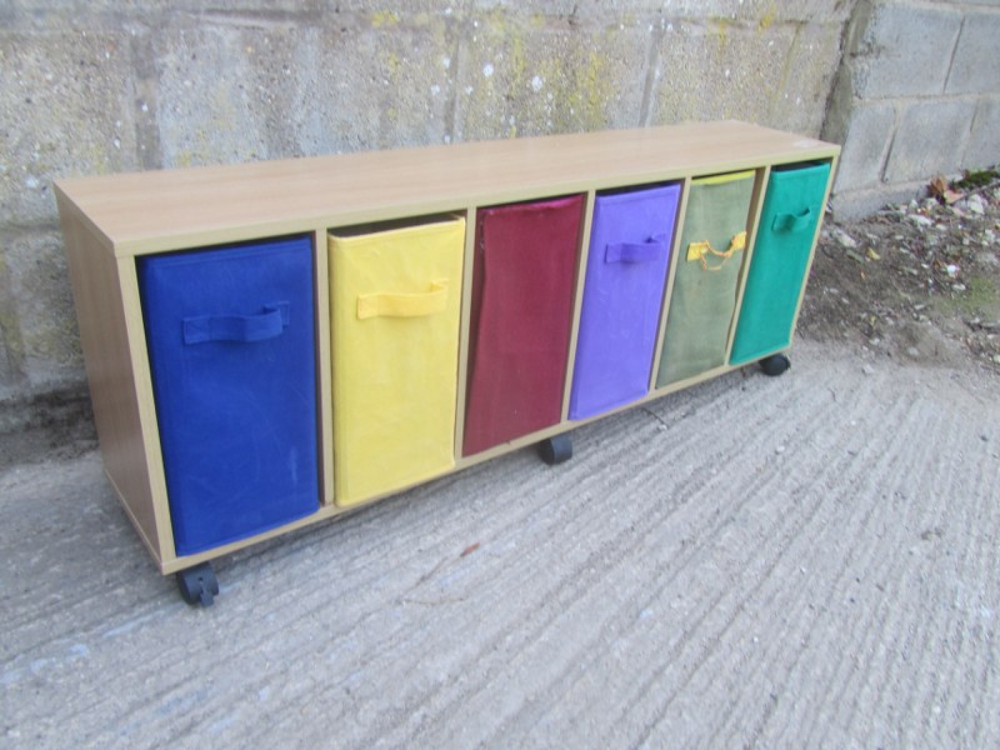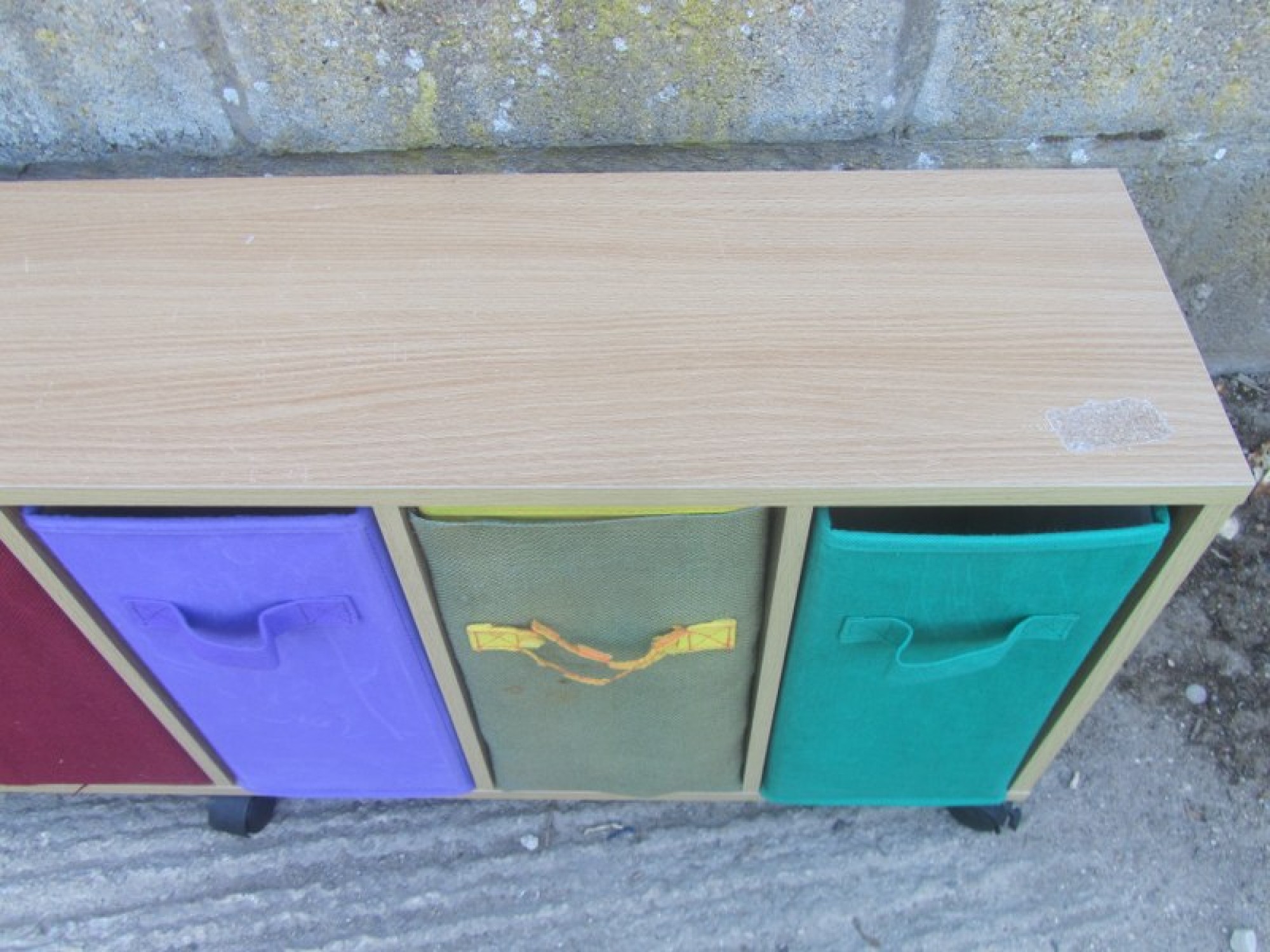 IN A LIGHT WOOD EFFECT FINISH. A STORAGE CABINET. WORN MATERIAL BOXES.
