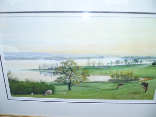 A MODERN LIMITED EDITION PRINT OF RUTLAND WATER, TITLED 'SUNSET AT BARNSDALE'. LIMITED EDITION 18 / 100. BY PENNY RICHARDSON.