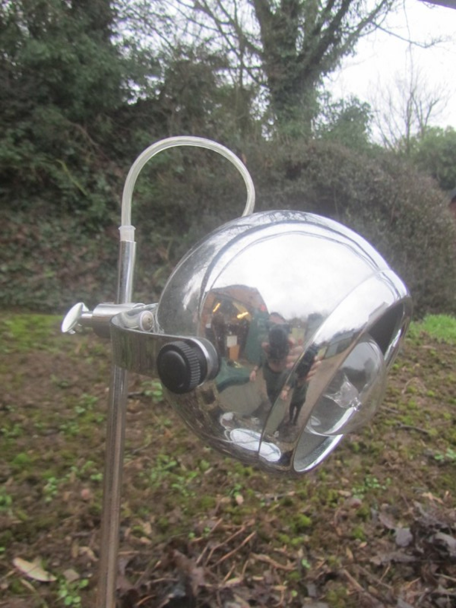 A MODERN DESK LAMP WITH MOVEABLE HEAD. SOME RUST AND WEAR.