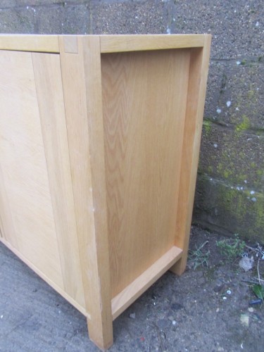 AN OAK (SOLID & VENEER) CABINET IN A MODERN MINIMALIST STYLE. STRONG AND STURDY. THERE IS NO BACK PANEL. SOME LIGHT MARKS.