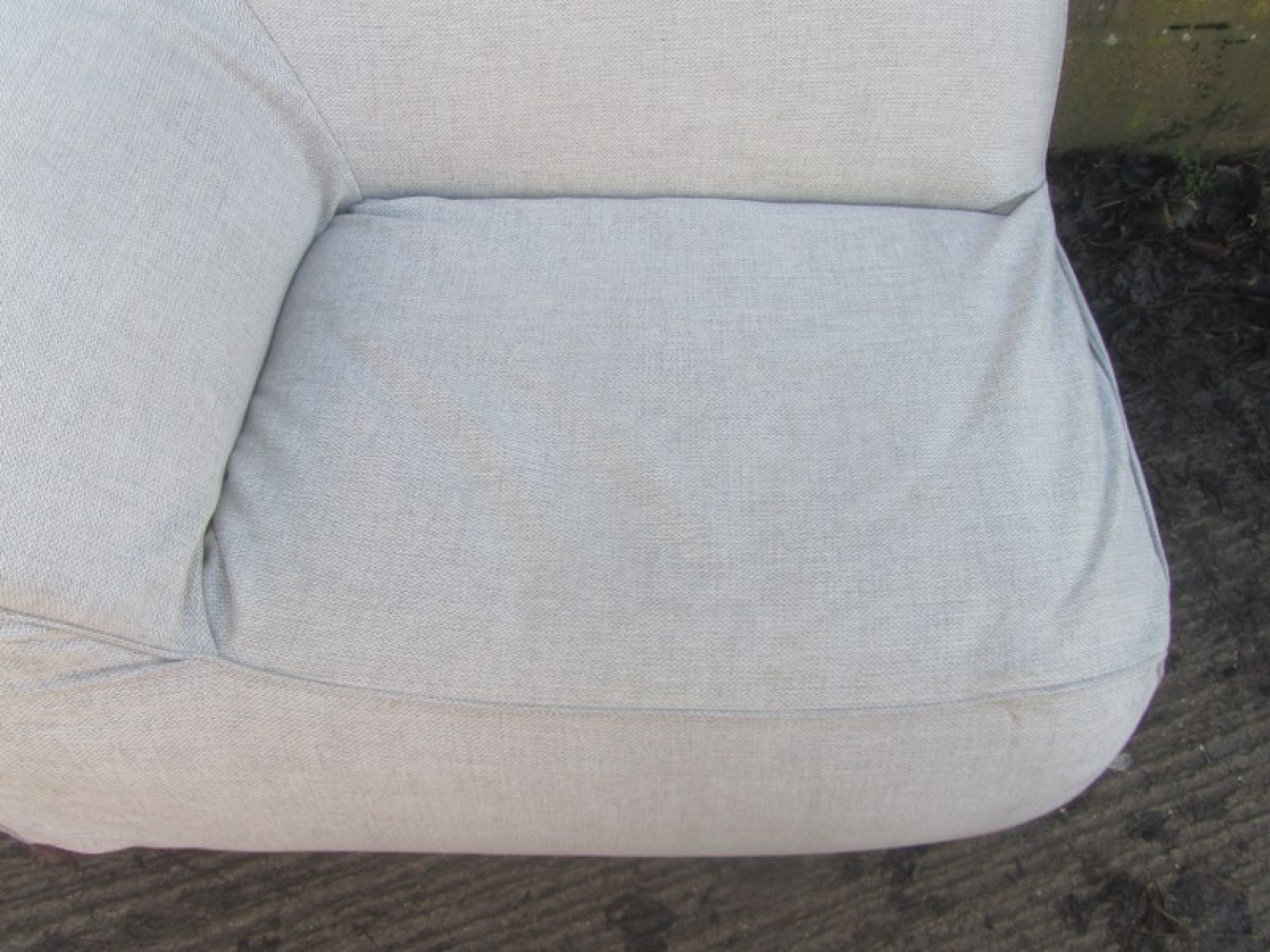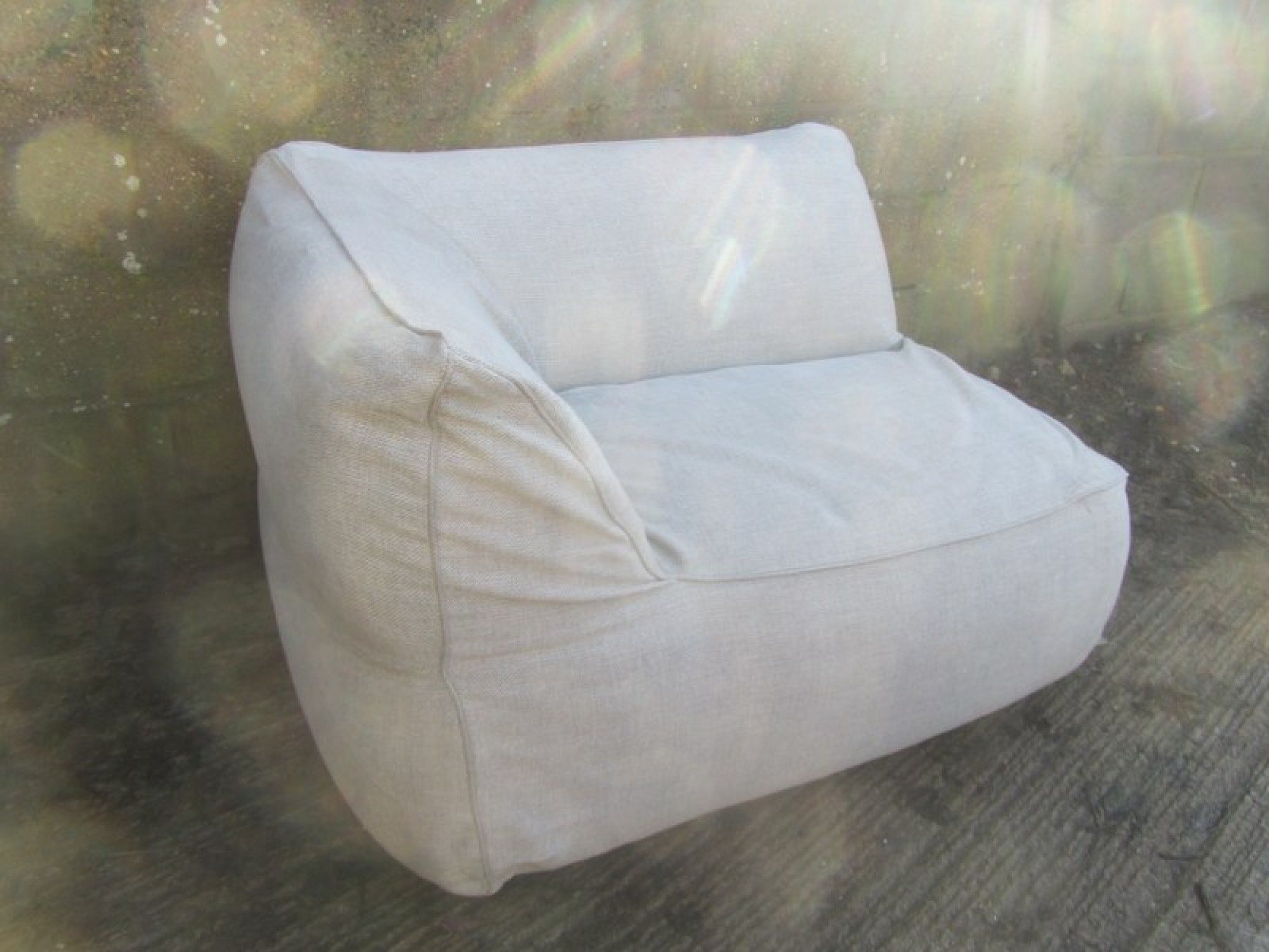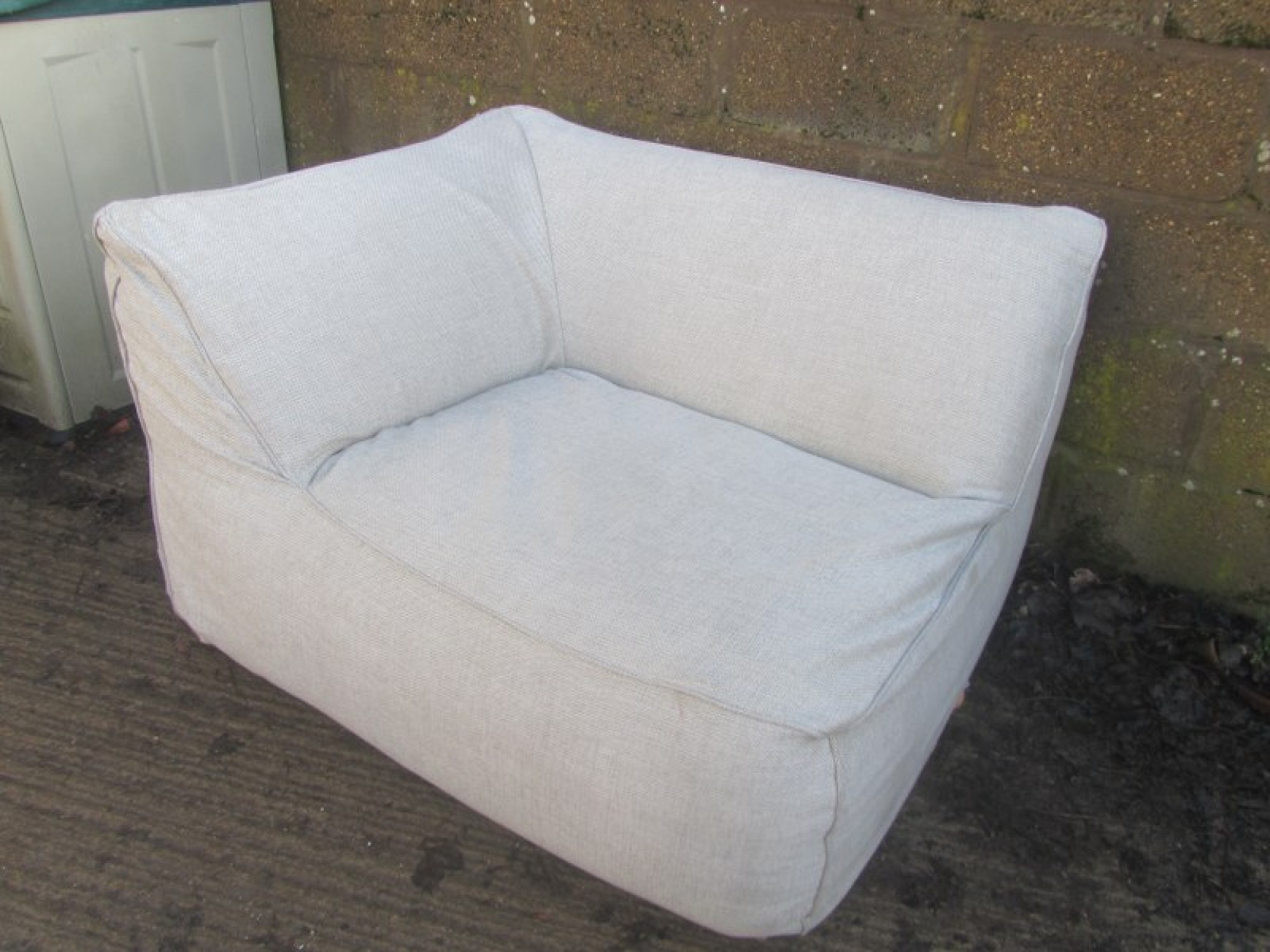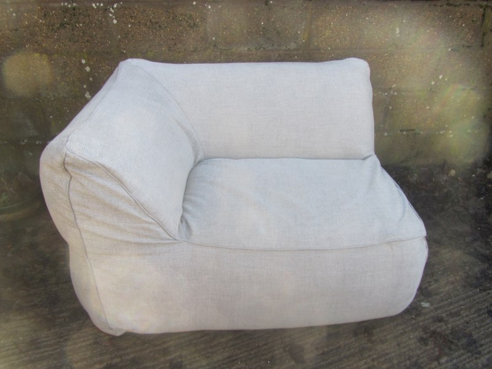 A BEAN BAG TYPE SOFA IN A CREAM MATERIAL. ORIGINALLY A CORNER SECTION FROM A LARGE SOFA SET, BUT IT WORKS WELL ON ITS OWN. IT IS SOFT AND HAS THE FEELING OF A FIRM BEAN BAG. CLEAN AND COMFORTABLE. MADE IN ITALY, GOOD QUALITY. SEAT HEIGHT IS 40cm.