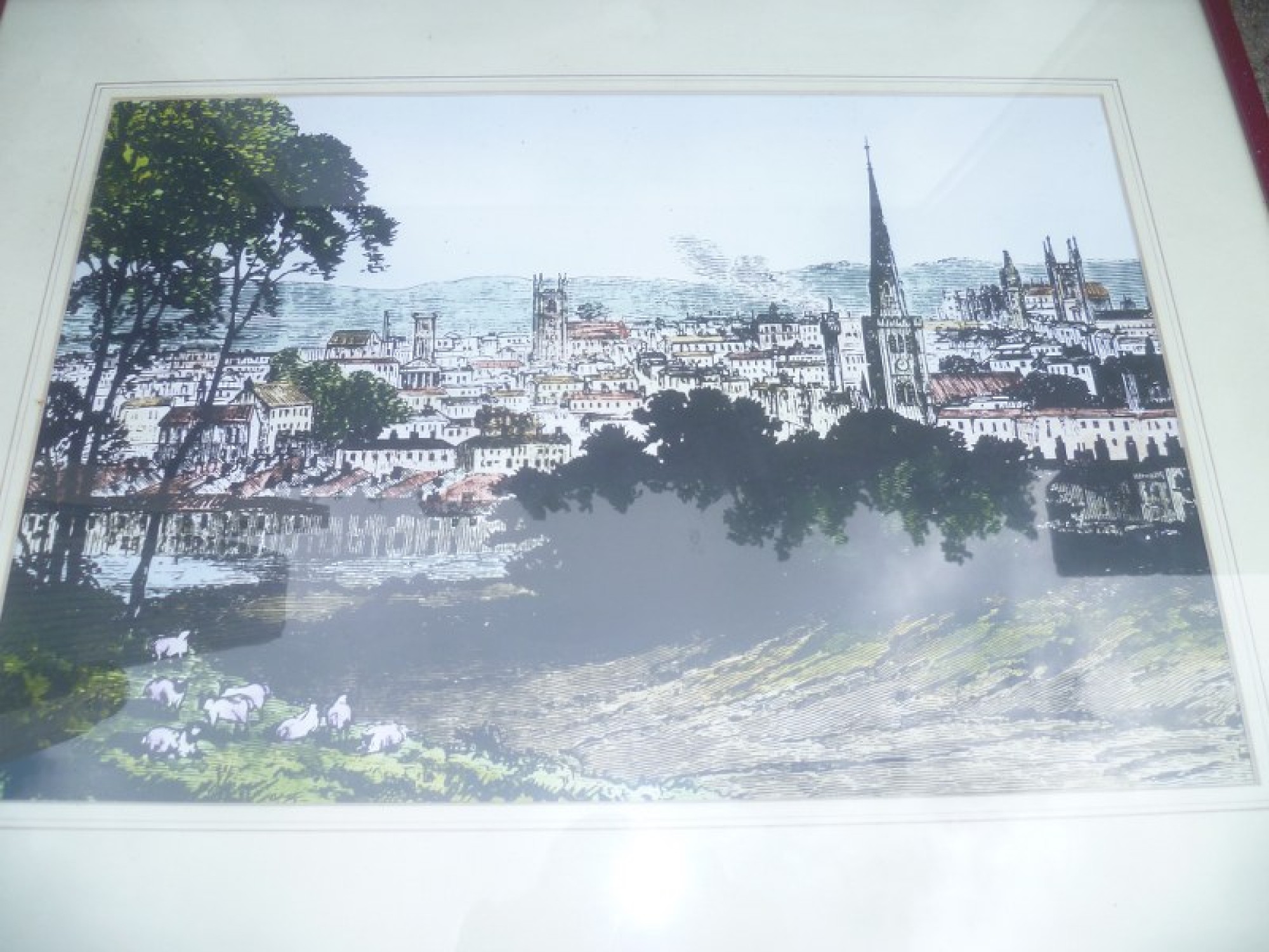 A PAIR OF FRAMED PRINTS OF CITY SCENES, NOT SURE WHERE. IN BASIC FRAMES.