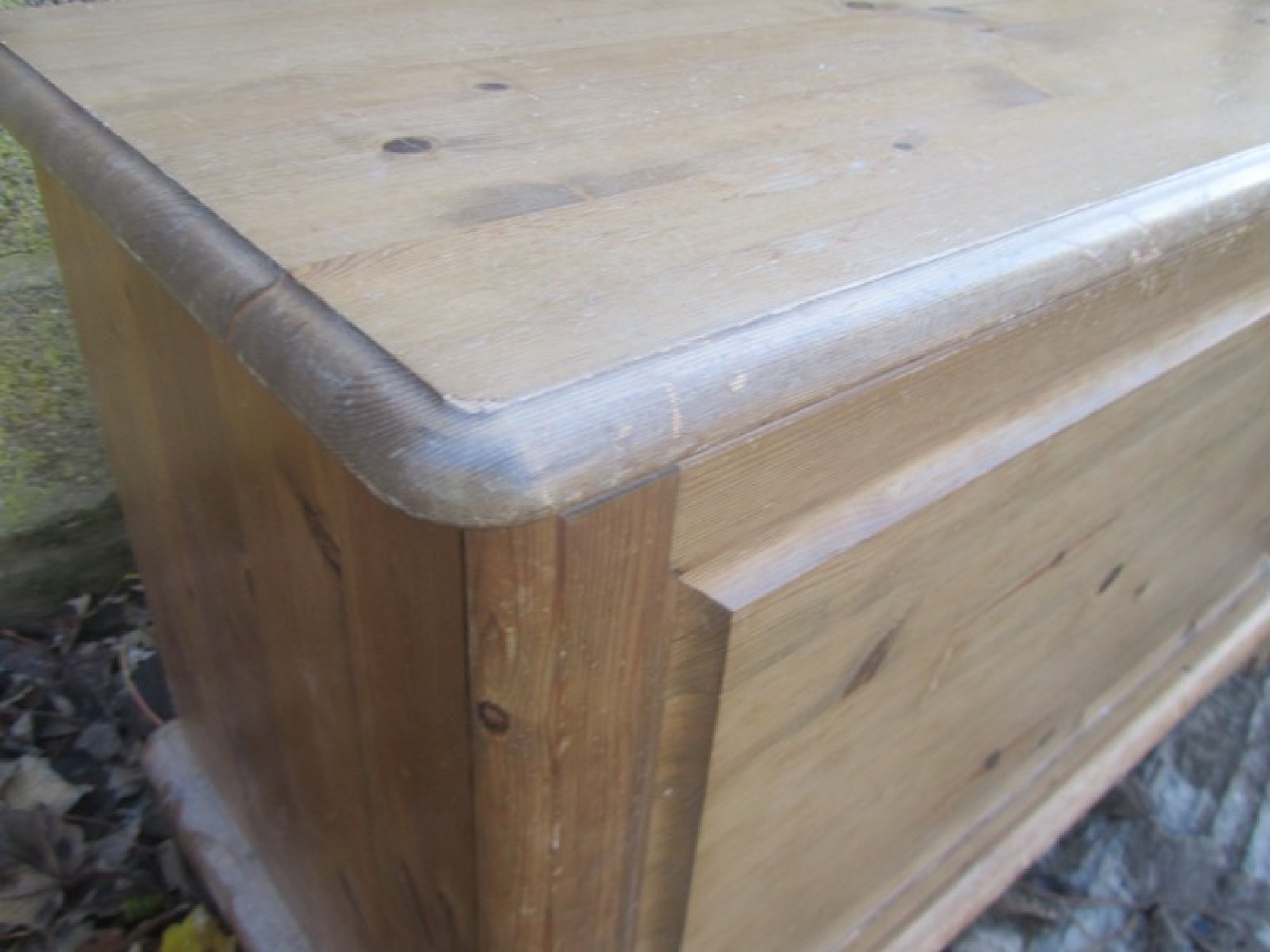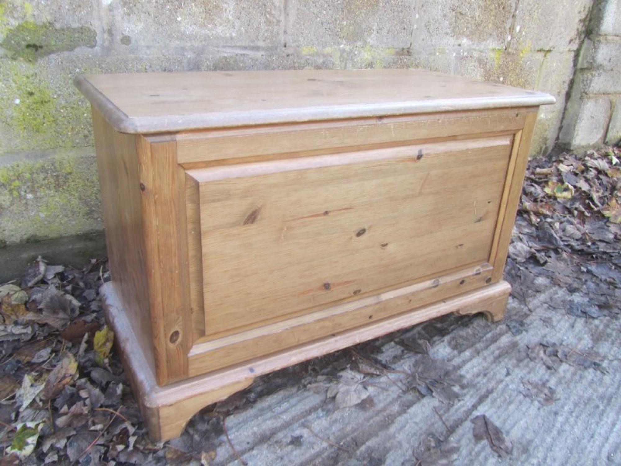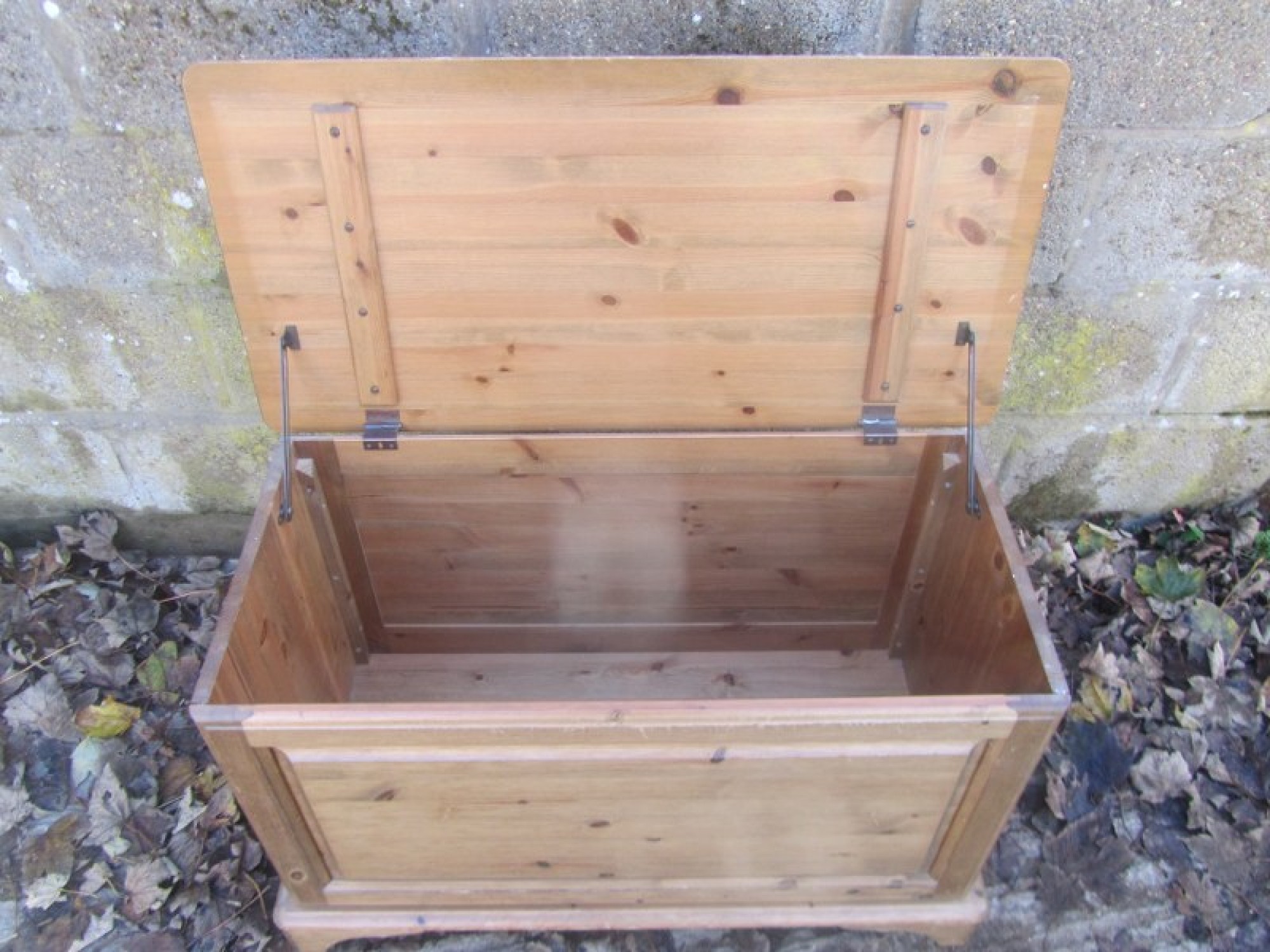 THIS IS A MODERN SOLID PINE BLANKET BOX. THESE ARE GREAT FOR STORING CLOTHES / BLANKETS, THEY ALSO MAKE GREAT TOY BOXES, COFFEE TABLES etc. STRONG AND STURDY. SOME SCUFFS AND WEAR, FADED WOOD.