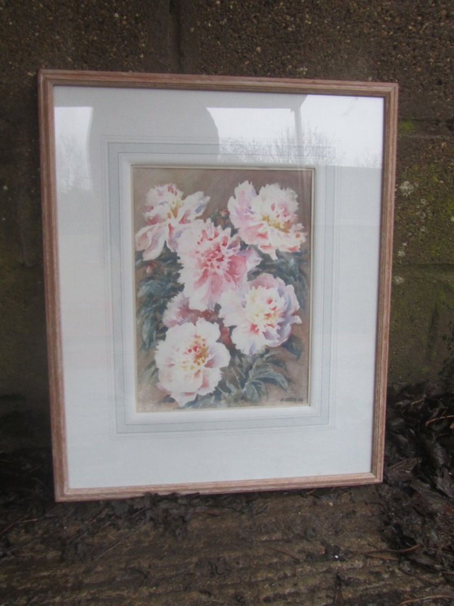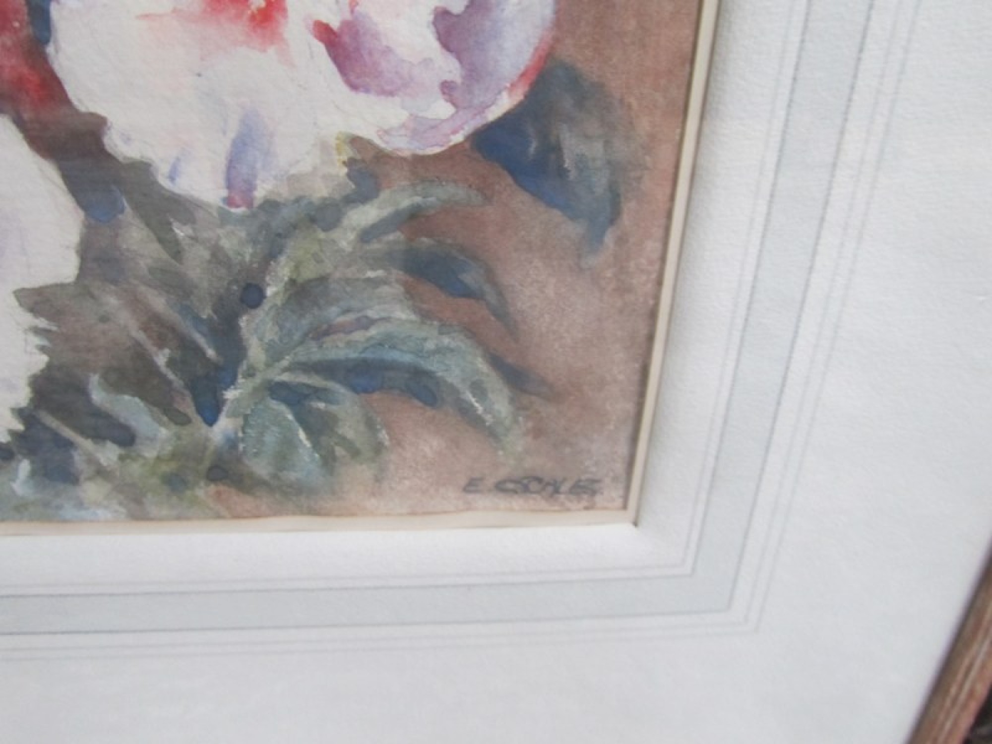 A MODERN WATERCOLOUR PAINTING OF FLOWERS, FRAMED. BY E SCALES.