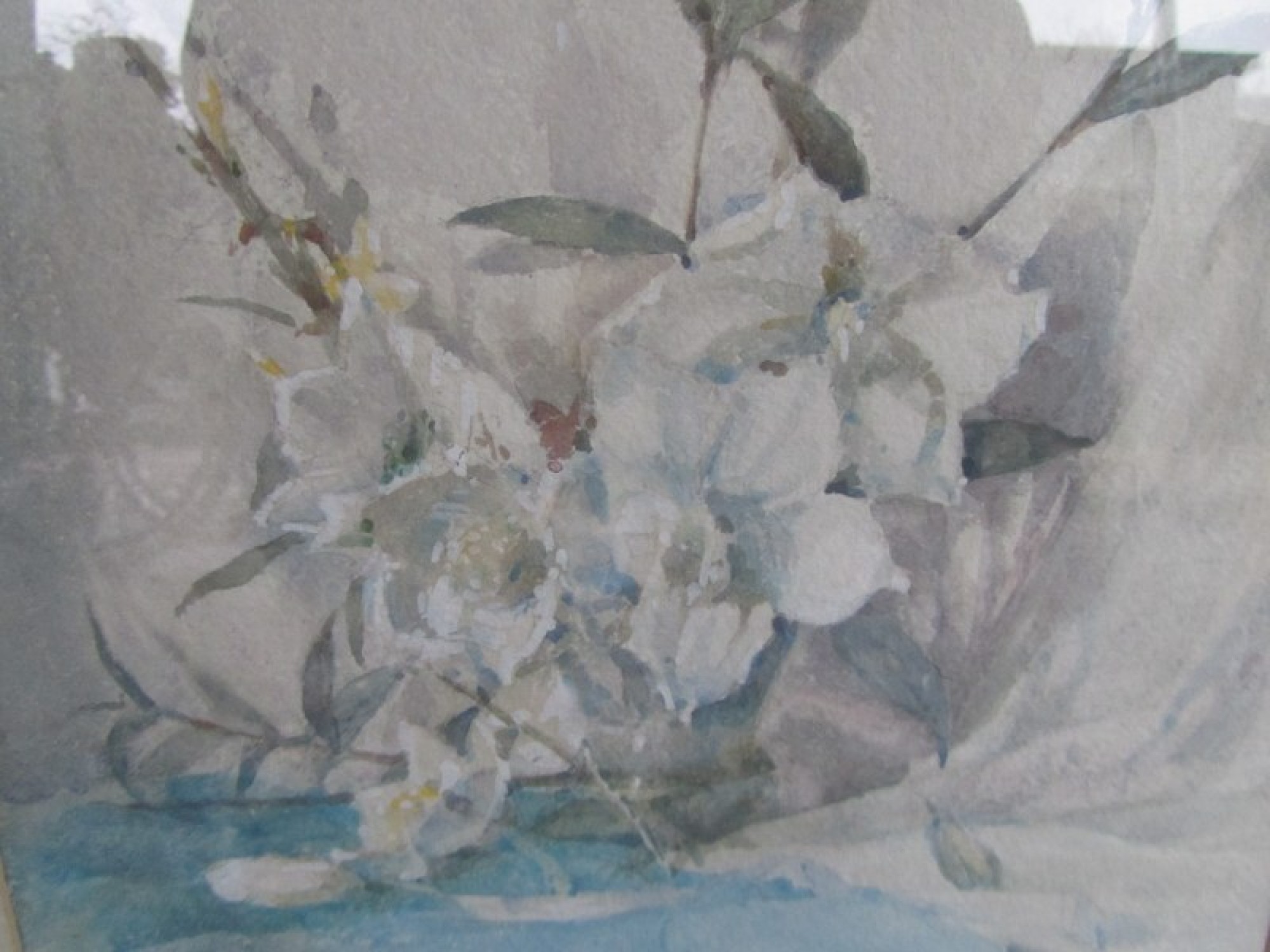 A MODERN WATERCOLOUR PAINTING OF FLOWERS, FRAMED. BY E SCALES.