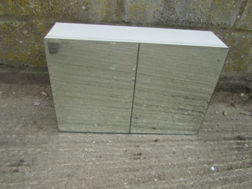 A WHITE BATHROOM CABINET TO FIT ON THE WALL. MIRRORED DOORS.