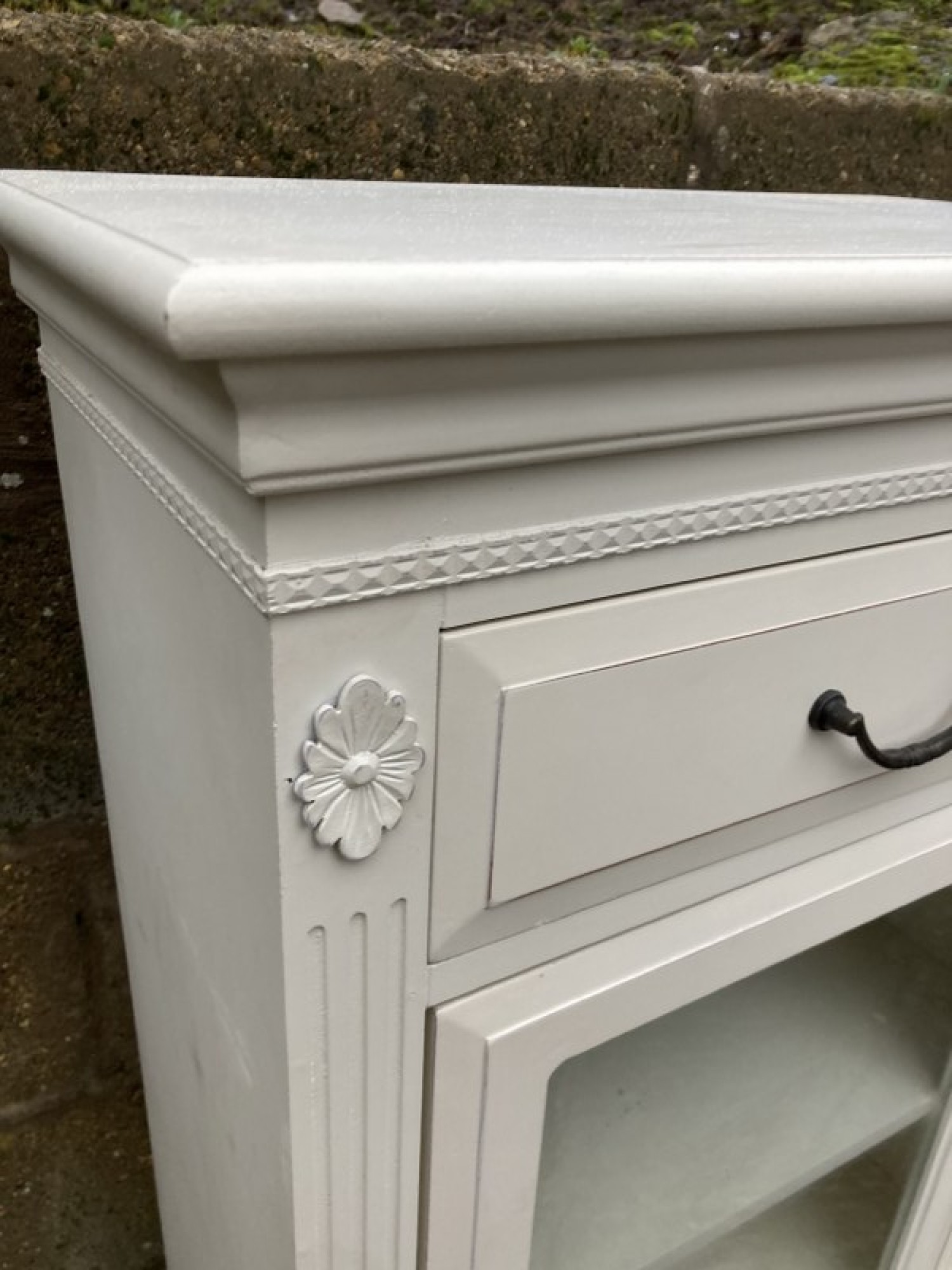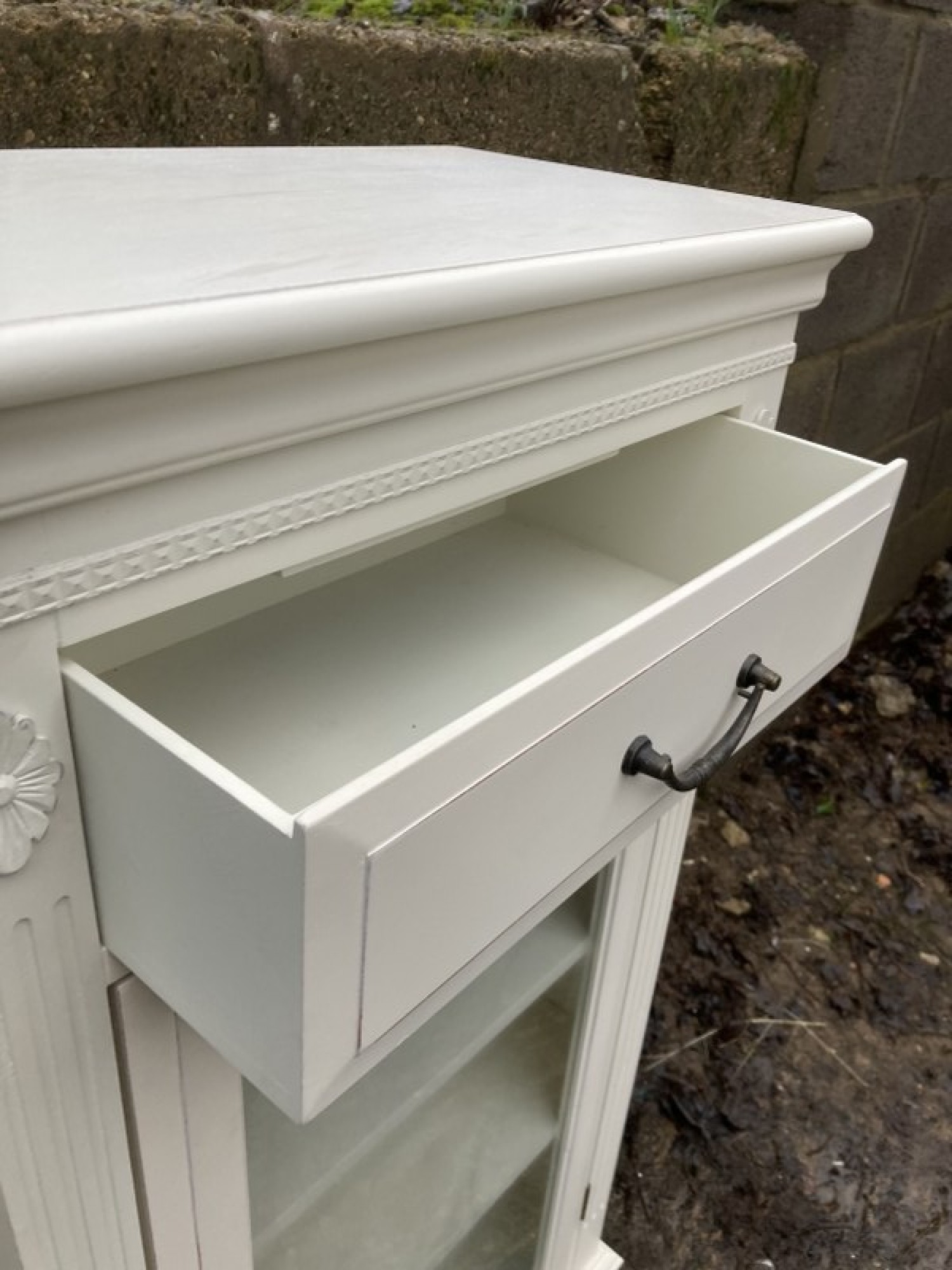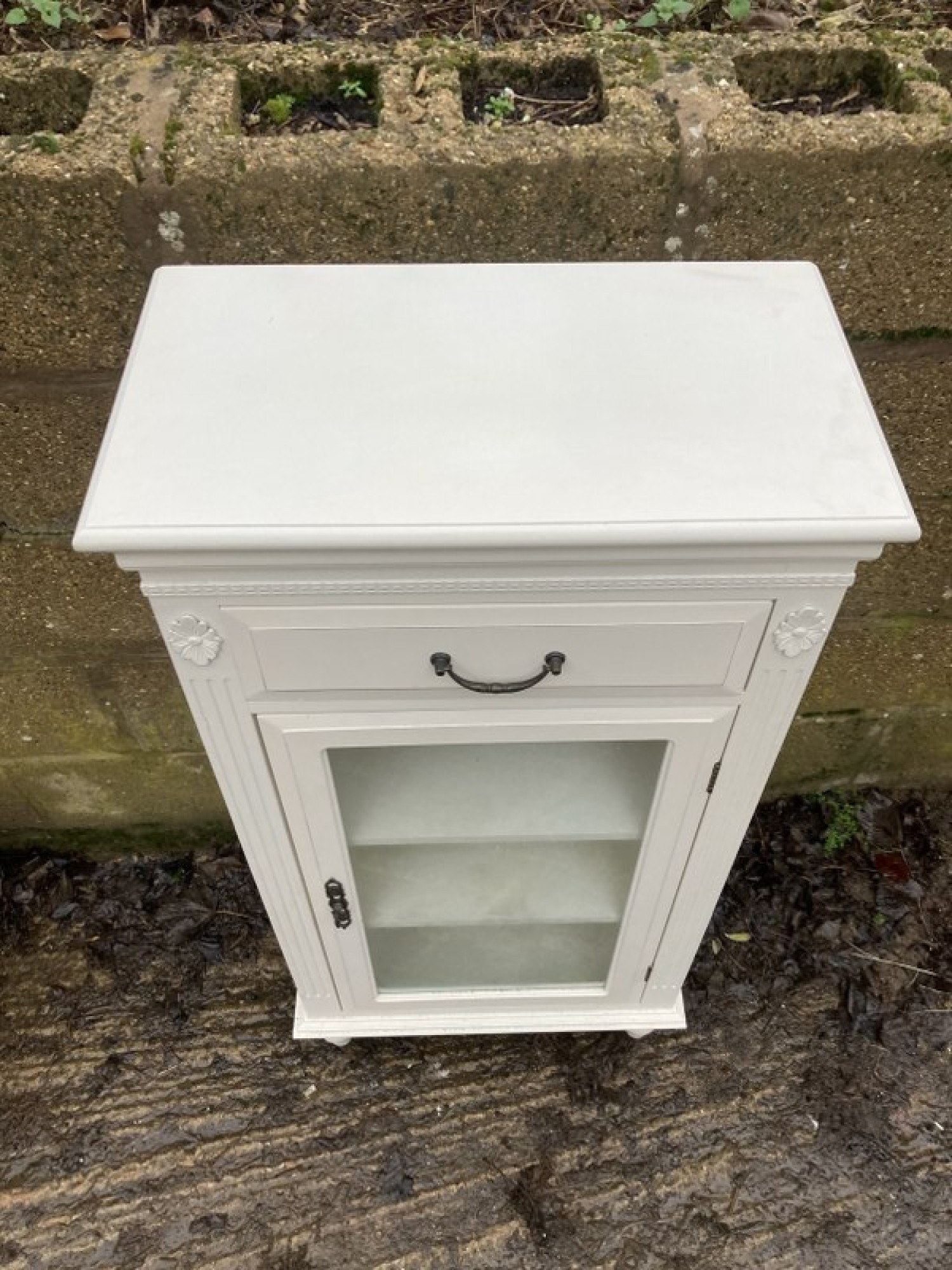 THIS IS A MODERN CABINET. IT IS WHITE. GLAZED DOOR.