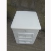 THIS IS A BEDSIDE CABINET. IN A WHITE FINISH. IN AVERAGE CONDITION WITH MINOR WEAR AND TEAR. SCUFFED ON THE TOP RIGHT CORNER.
