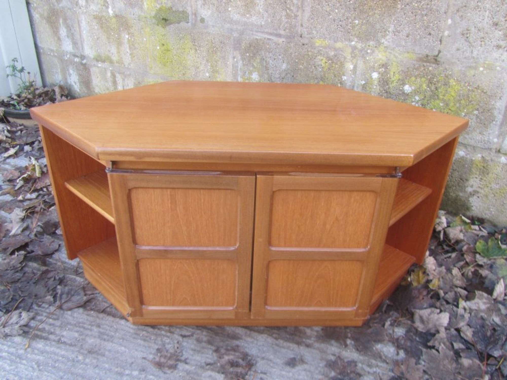 THIS IS A TEAK VENEER CABINET. THIS HAS SHELVES & CUPBOARDS, IDEAL FOR TV etc. IN GOOD CONDITION, A GOOD QUALITY ITEM. MADE BY 'NATHAN'.