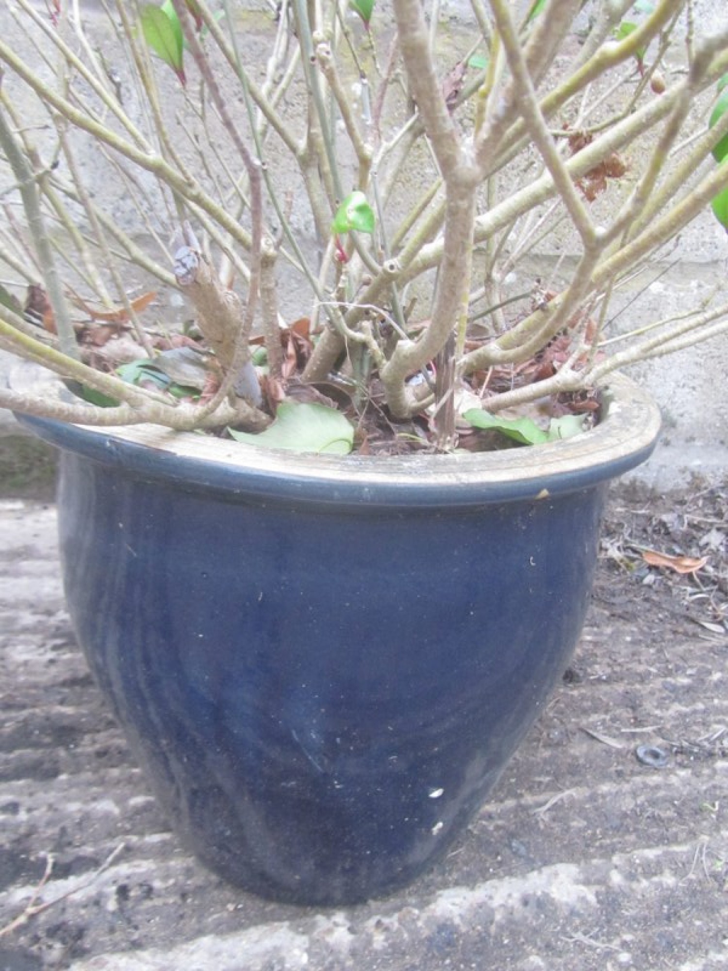 CERAMIC PLANTER FOR THE GARDEN, COULD BE USED INSIDE OR OUTSIDE. WITH SHRUB.