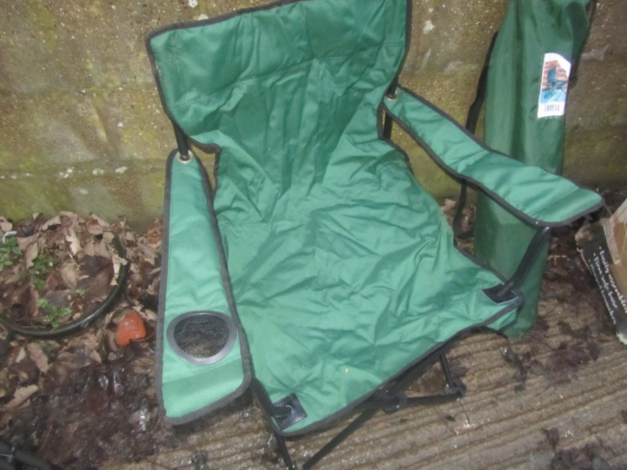 THIS IS A MATCHING PAIR OF FOLD UP OUTDOOR CHAIRS. THE FRAMES ARE METAL. THE SEATS ARE MATERIAL. FOR SALE AS A PAIR OF CHAIRS. SEAT HEIGHT IS 49cm.