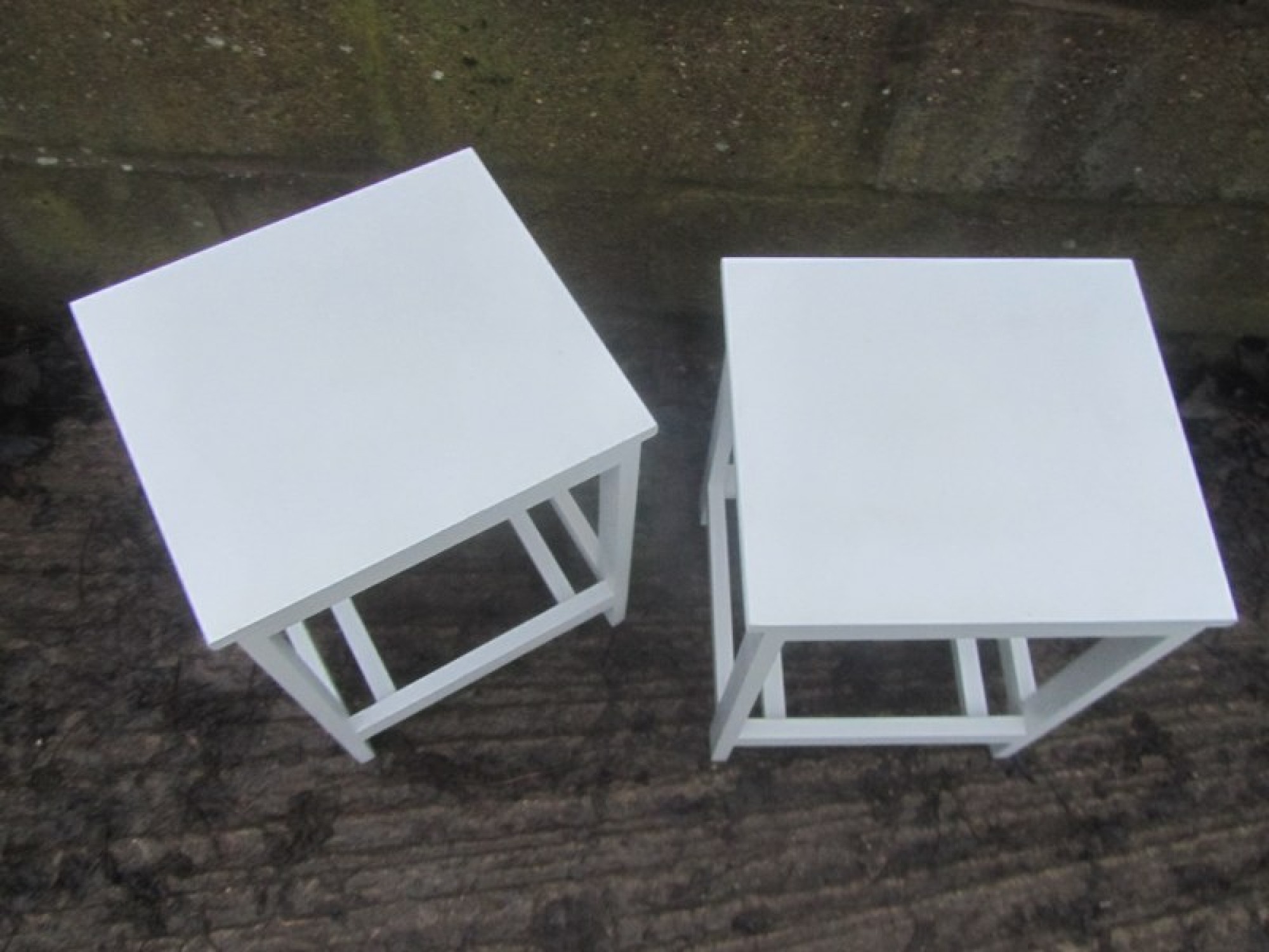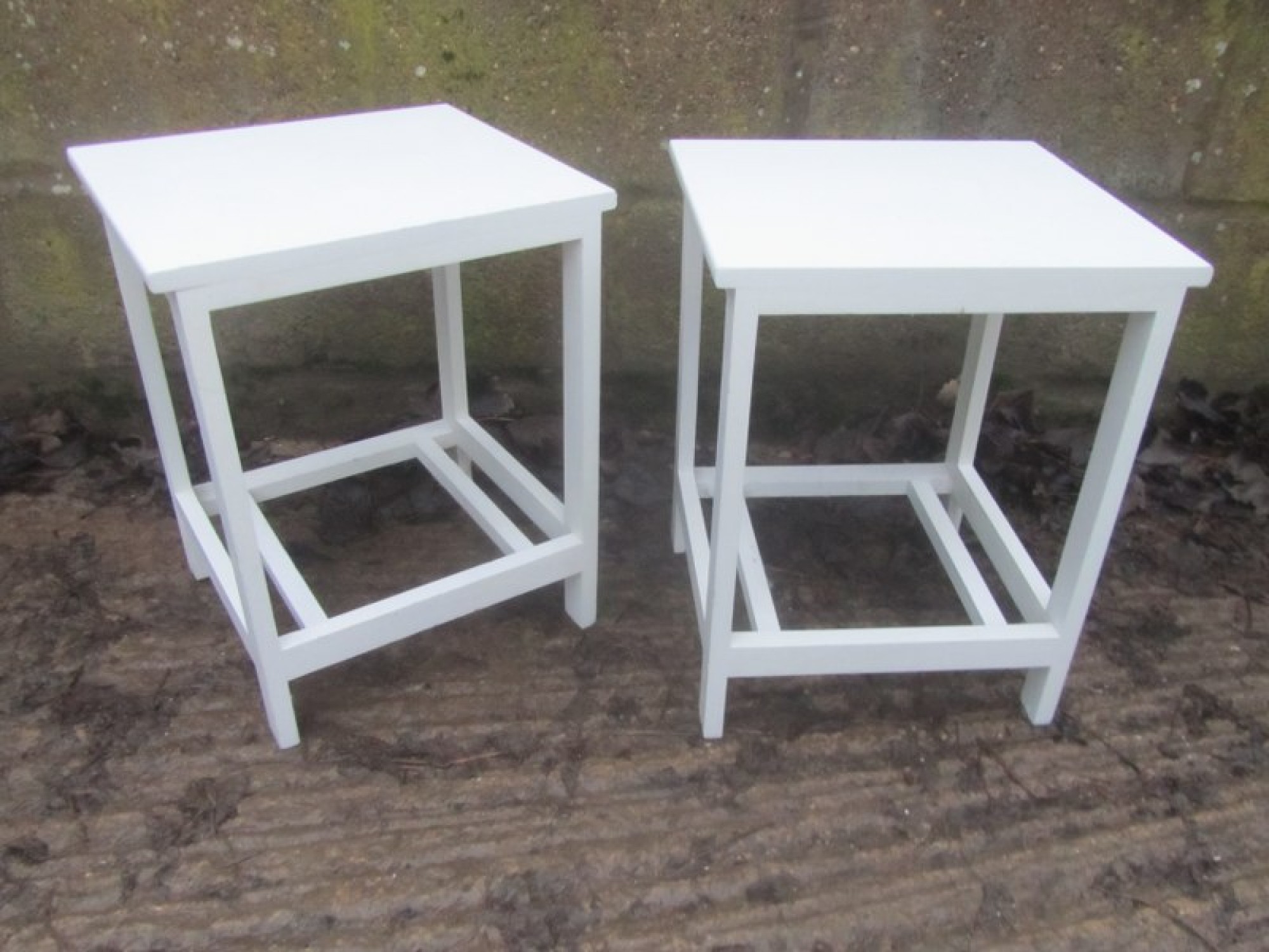 PAIR OF SIDE TABLES OR BEDSIDE CABINETS. PAINTED WHITE.