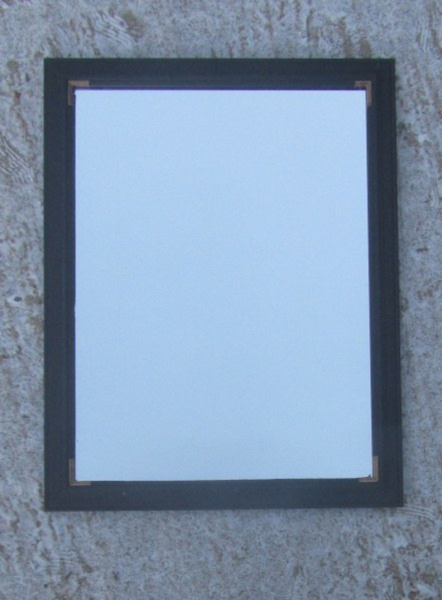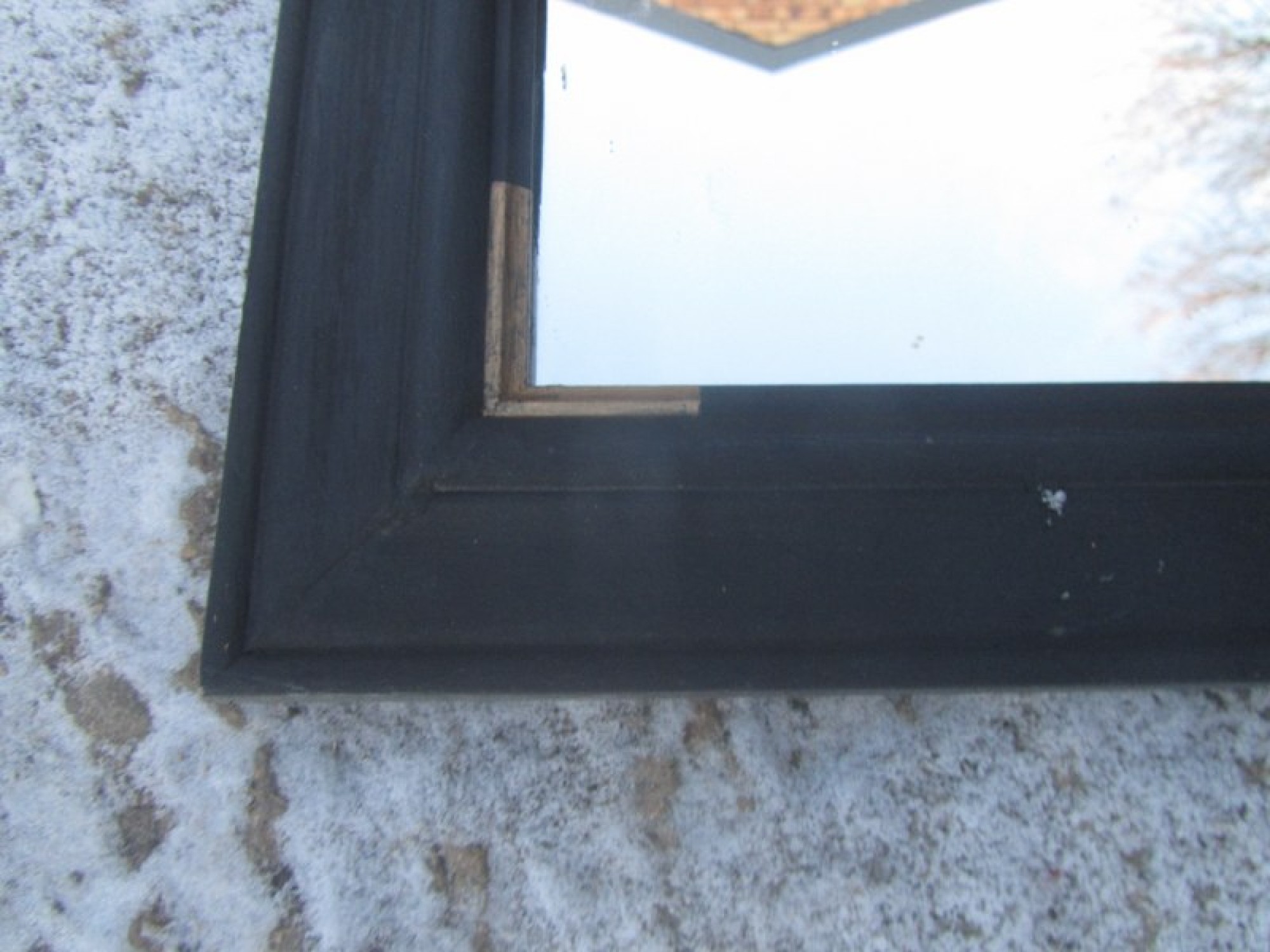 A SIMPLE RECTANGULAR WALL MIRROR IN A SOLID PINE FRAME, THE FRAME HAS BEEN PAINTED BLACK.