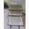 A STYLISH NEST OF 3 MAHOGANY VENEERED TABLES IN THE REGENCY STYLE. THE TABLES FIT UNDER EACH OTHER SO THEY NEATLY STORE AWAY.