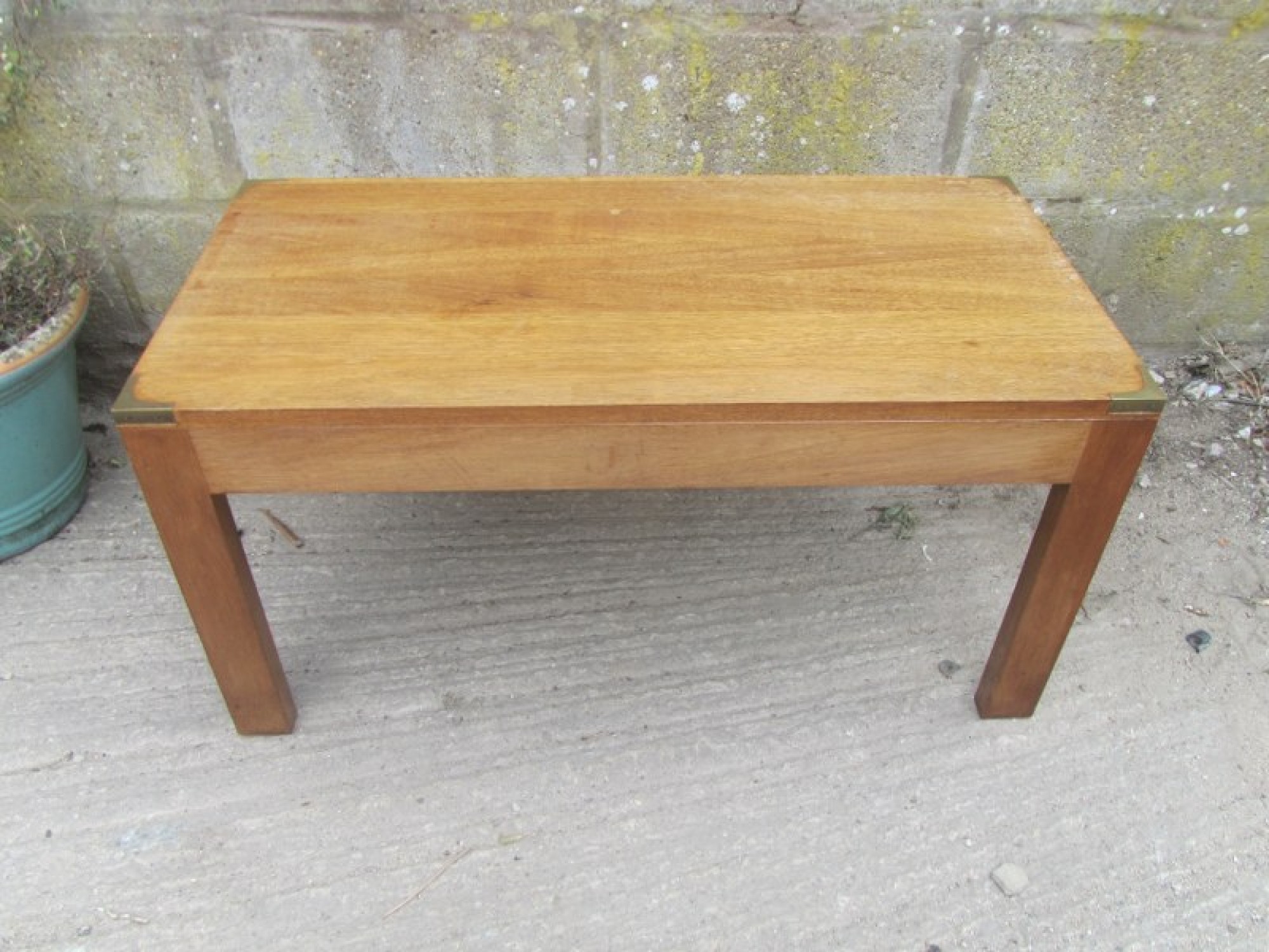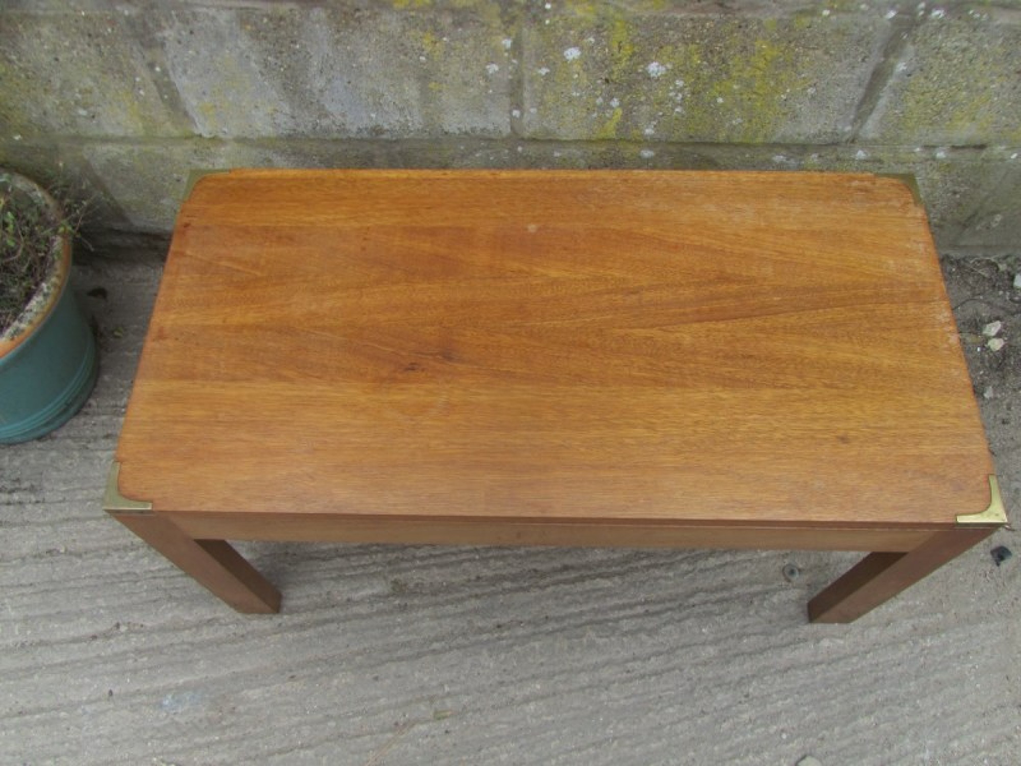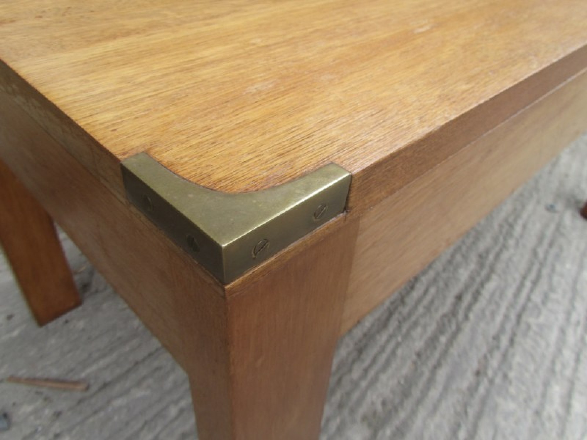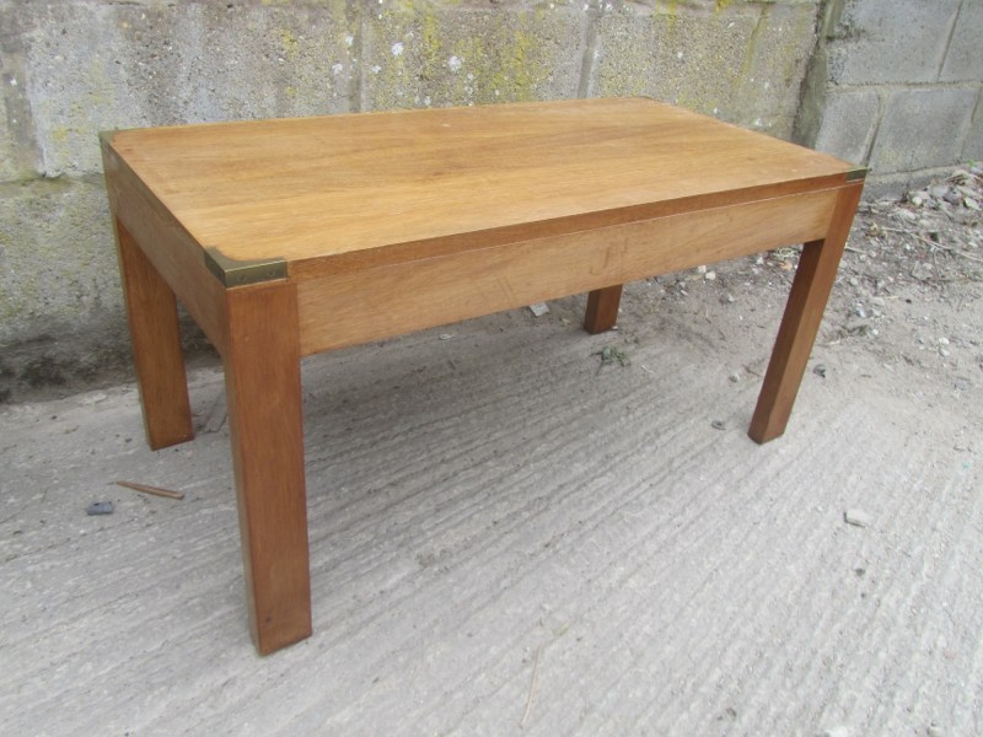 A STYLISH MAHOGANY COLOURED TABLE IN THE CAMPAIGN STYLE.