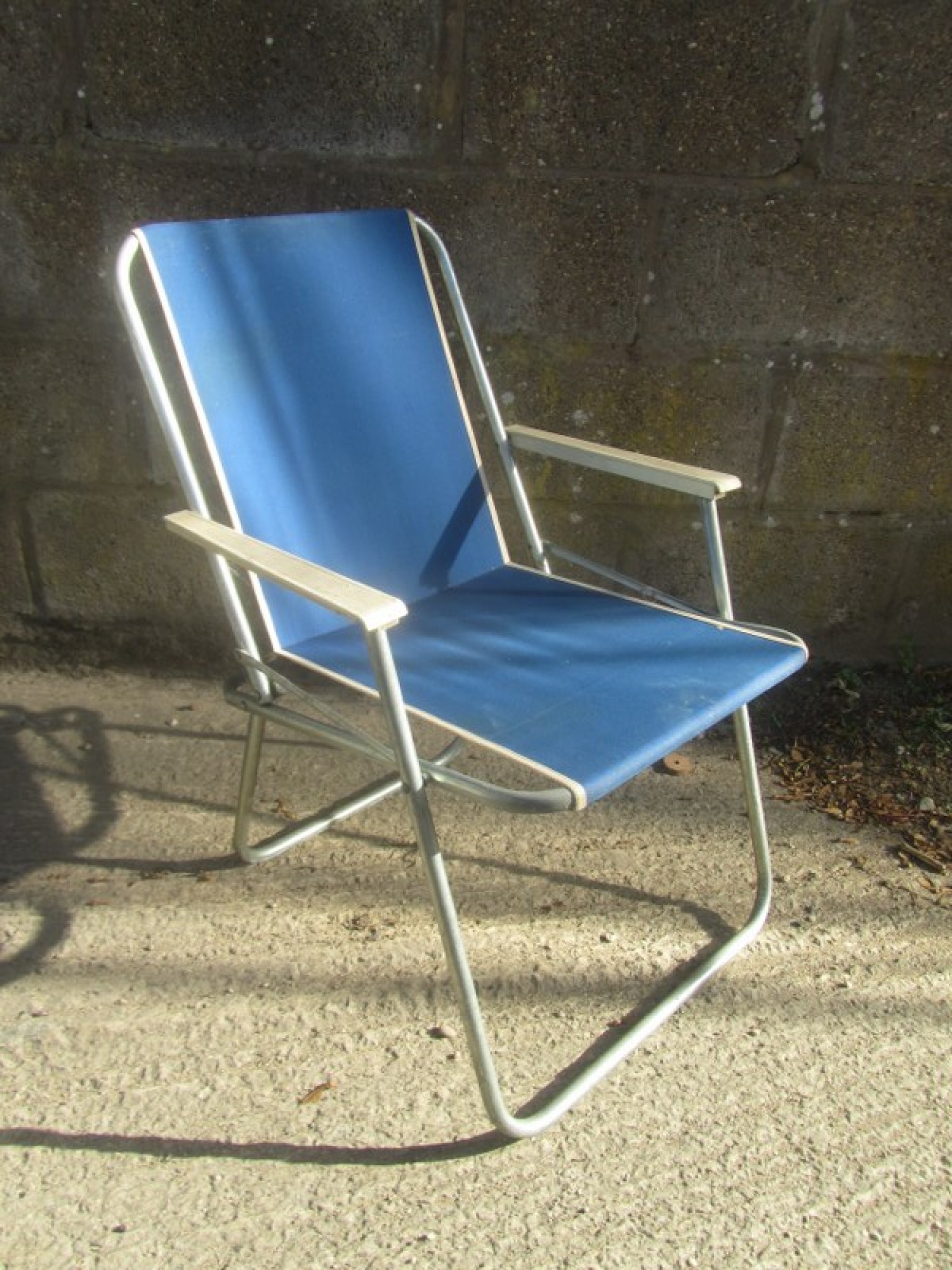 THIS IS A FOLD UP OUTDOOR CHAIR. THE FRAME IS METAL. SOME WEAR AND STAINS.