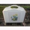 A SMALL MAGAZINE STORAGE RACK. CREAM WITH FLORAL PICTURES.