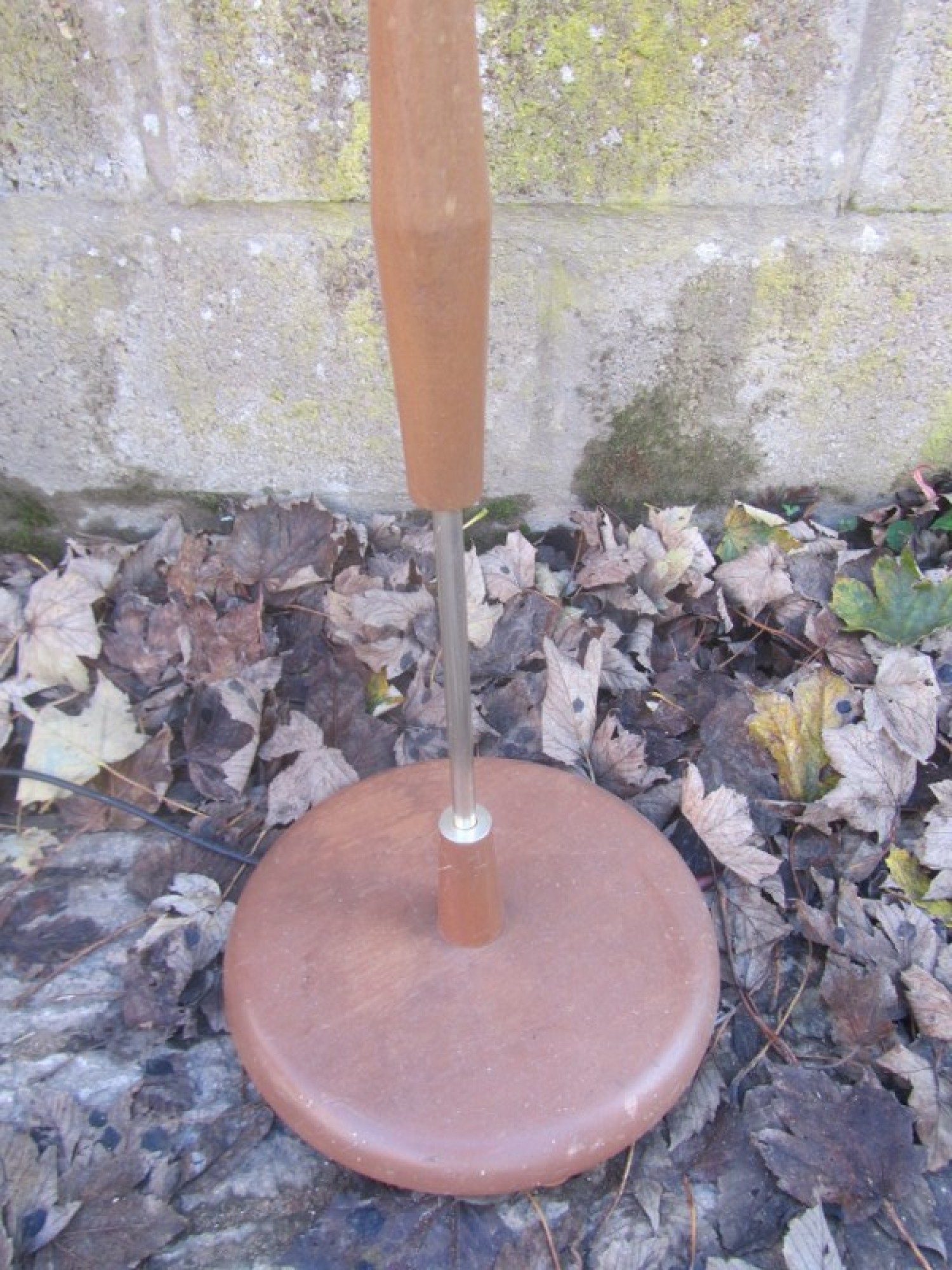 A TEAK STANDARD LAMP. AN ATTRACTIVE AND STYLISH LAMP, IDEAL FOR ANYWHERE IN THE HOME. IT TAKES A STANDARD BAYONET BULB. A GREAT 1970s RETRO LAMP!