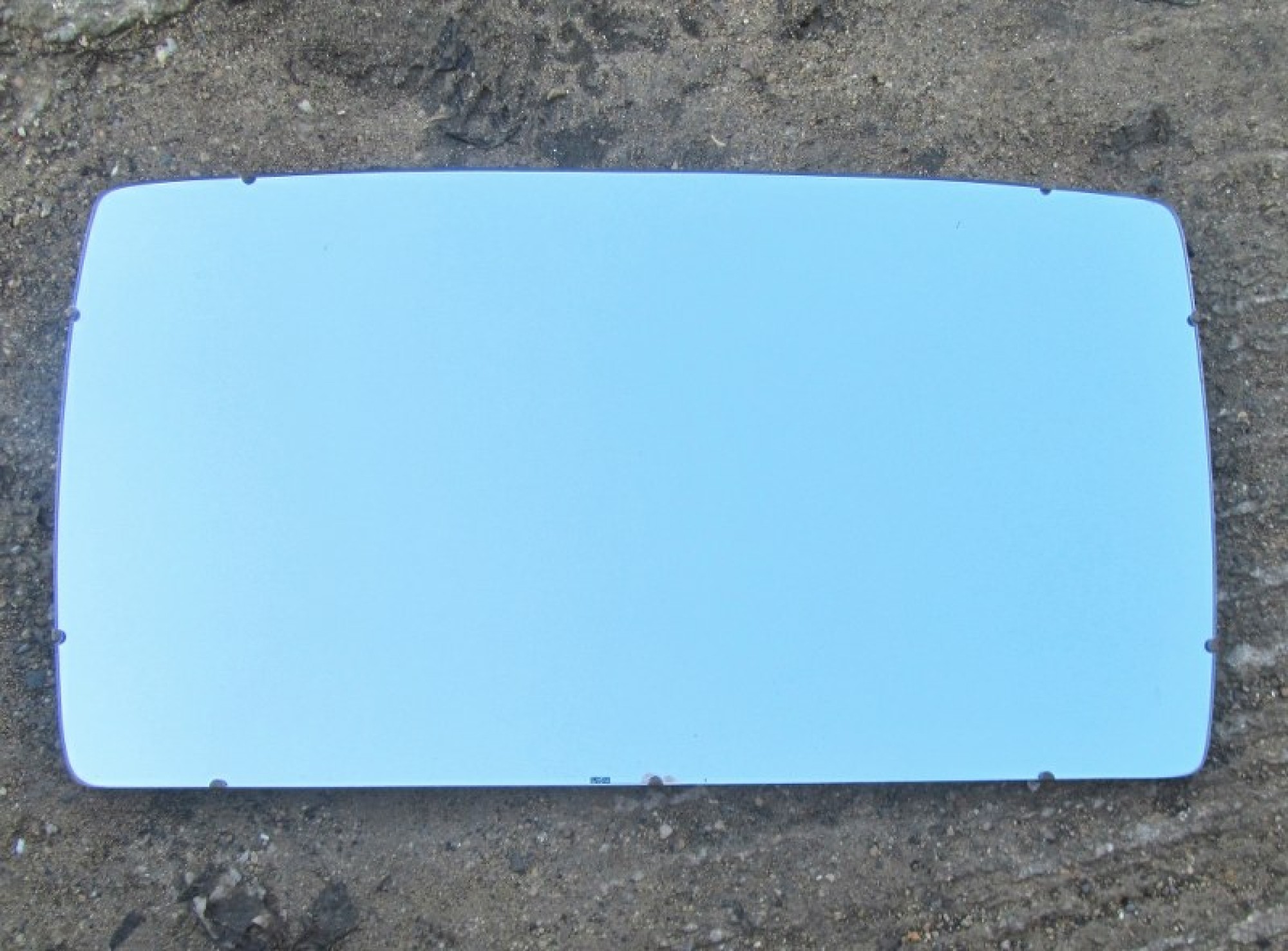 A STYLISH ART DECO WALL MIRROR ON A PLYWOOD BACKING. A SIMPLE AND ELEGANT VINTAGE MIRROR. NO CHAIN. WORN AROUND THE EDGE. ORIGINALLY FROM A DRESSING TABLE.