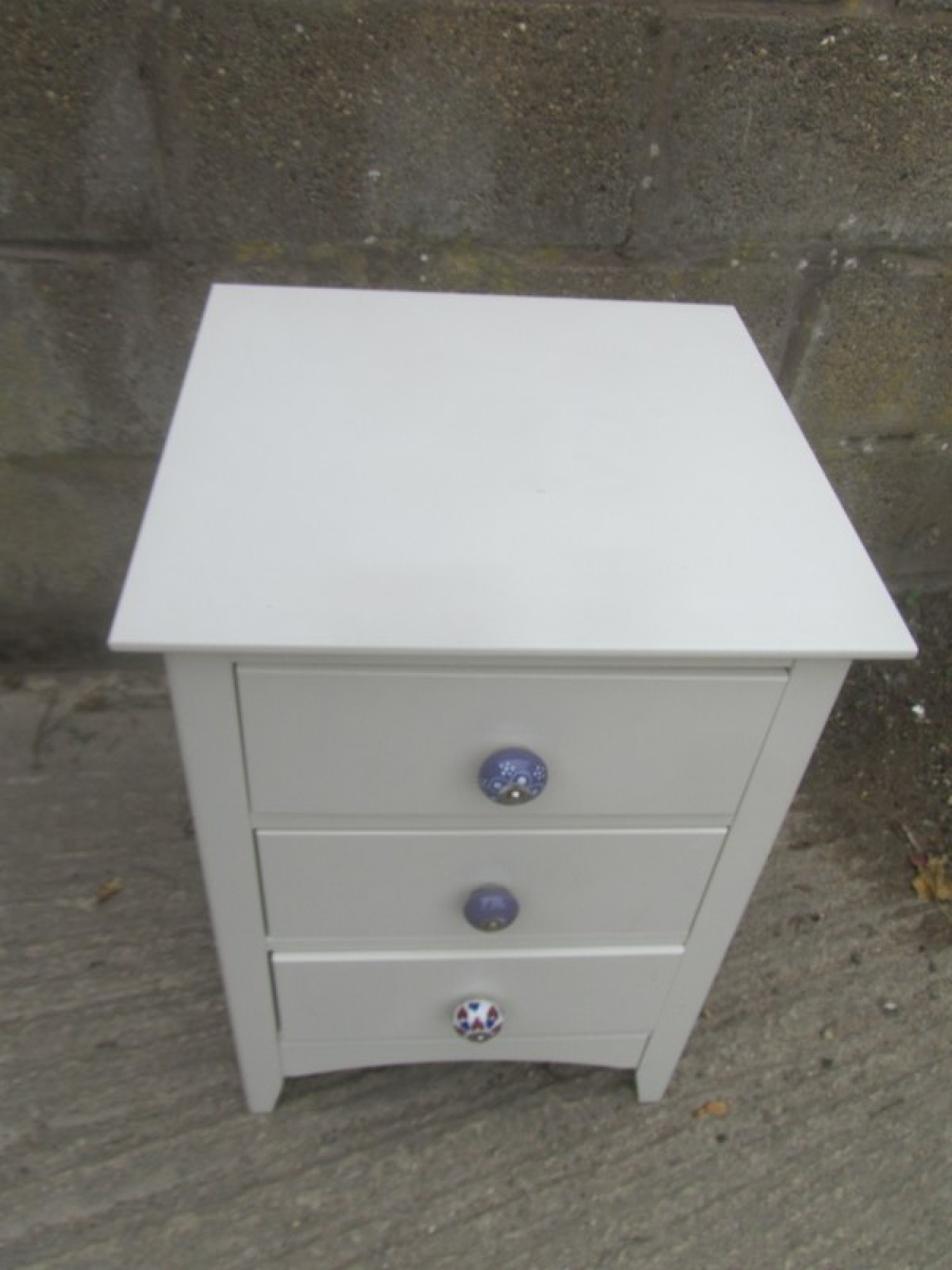 THIS IS A BEDSIDE CABINET. IN A CREAM FINISH. SOME SLIGHT WEAR. STRONG AND STURDY.