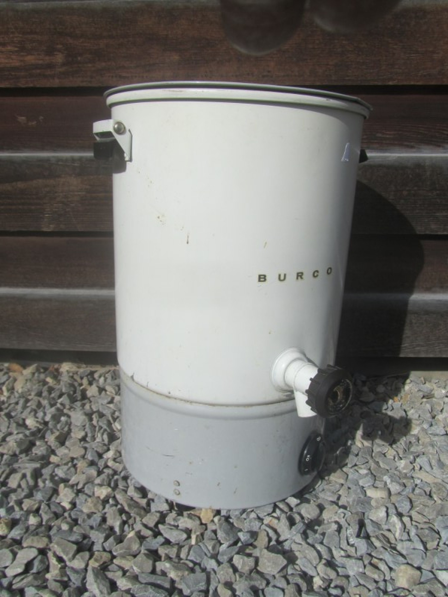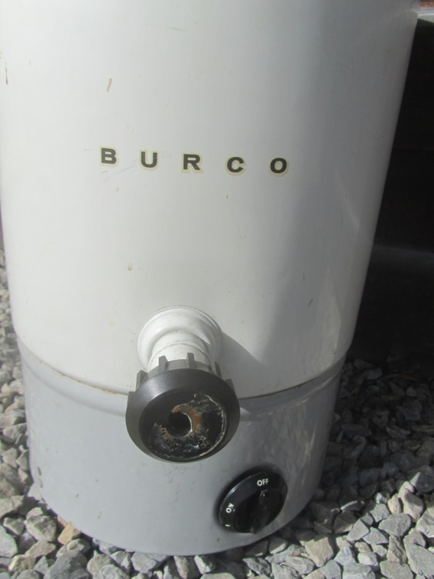 AN OLD BURCO BOILER WITH LID. IT IS NOT WORKING AND HAS HAD THE CABLE REMOVED, SOLD AS A DECORATIVE ITEM. A GREAT GARDEN PLANTER. IN AVERAGE CONDITION.