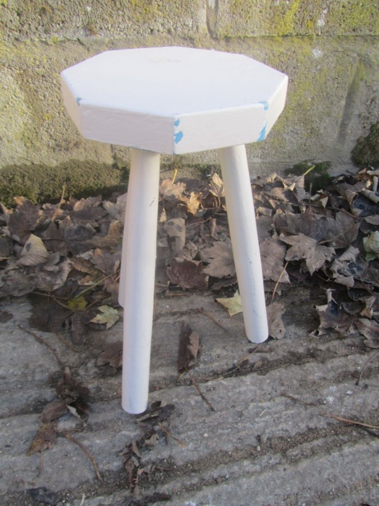 A SMALL STOOL WITH STURDY FRAME. IT HAS BEEN PAINTED SOME TIME AGO.