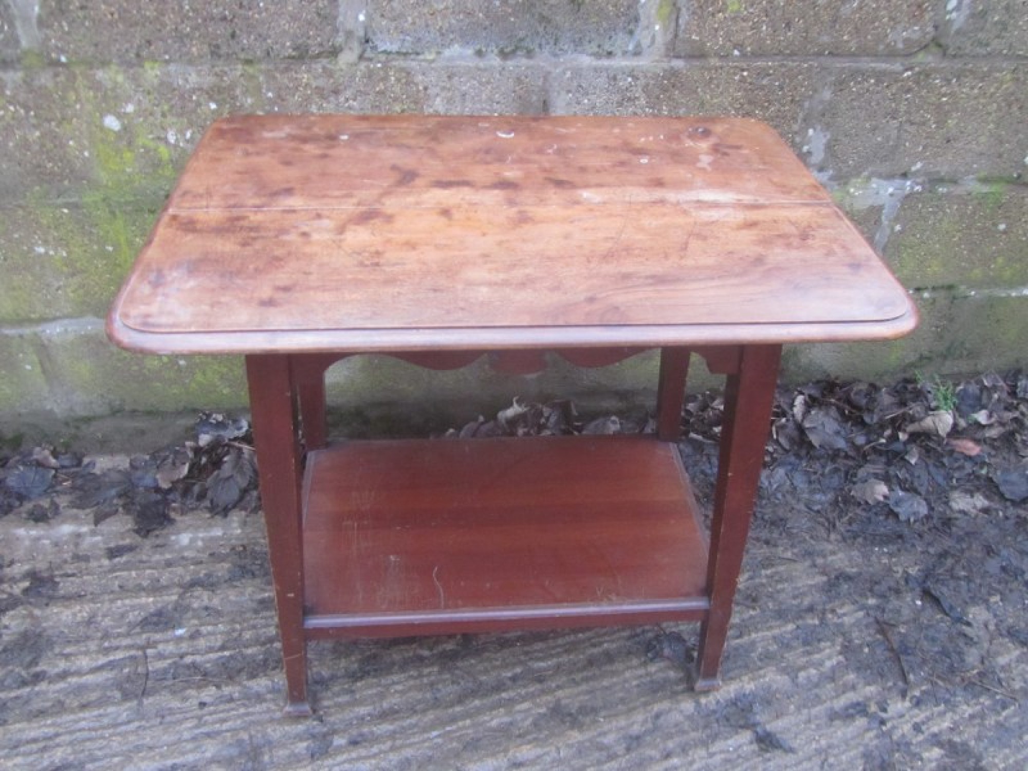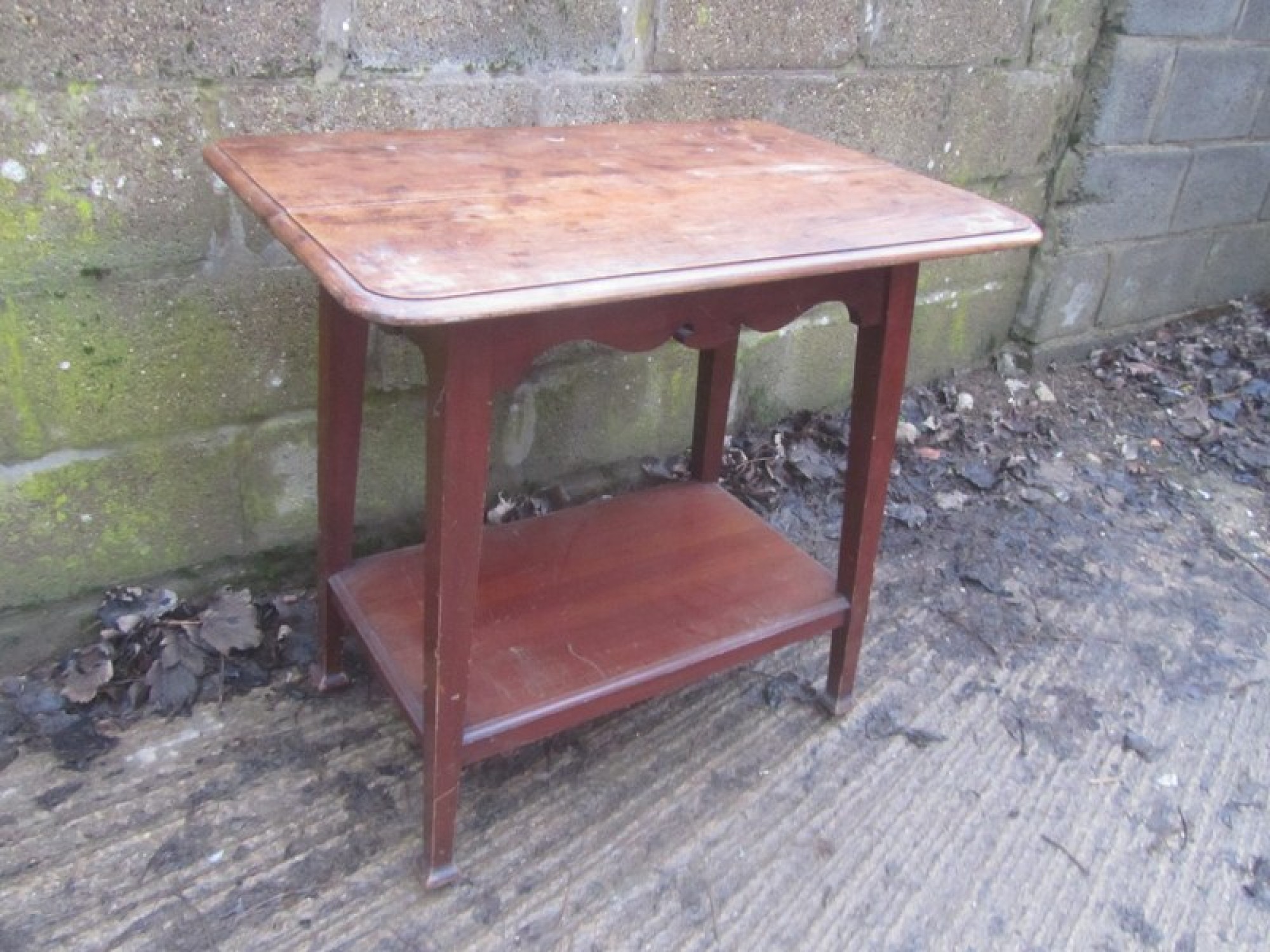 AN ANTIQUE TABLE, MAHOGANY VENEERED. A STYLISH SIDE TABLE.