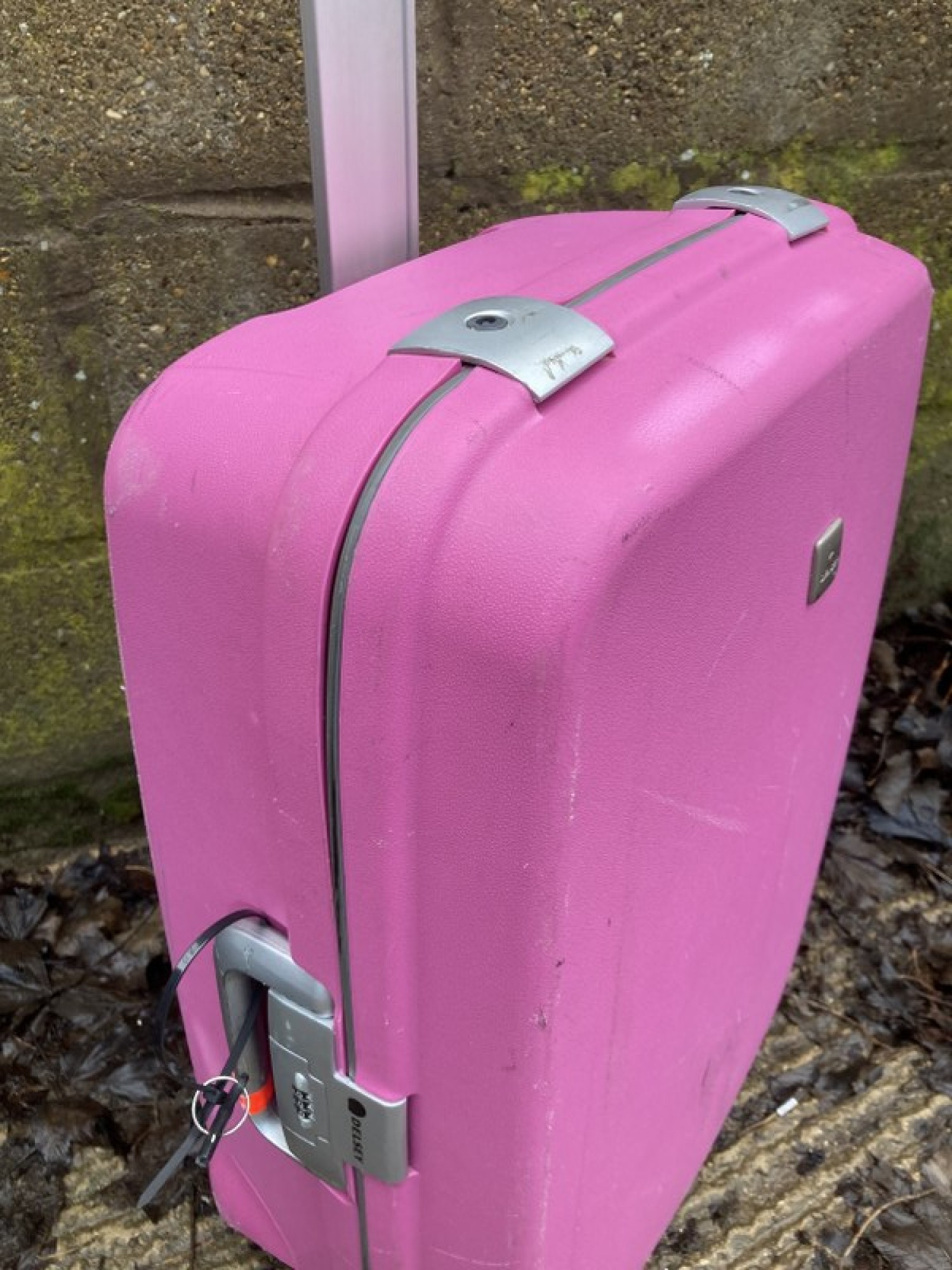 A LARGE HARDCASE SUITCASE, 2 WHEELS. ROBUST ENOUGH TO SURVIVE AIRPORT BAGGAGE, OR IDEAL FOR 'MOUSE PROOF' STORAGE IN THE LOFT.