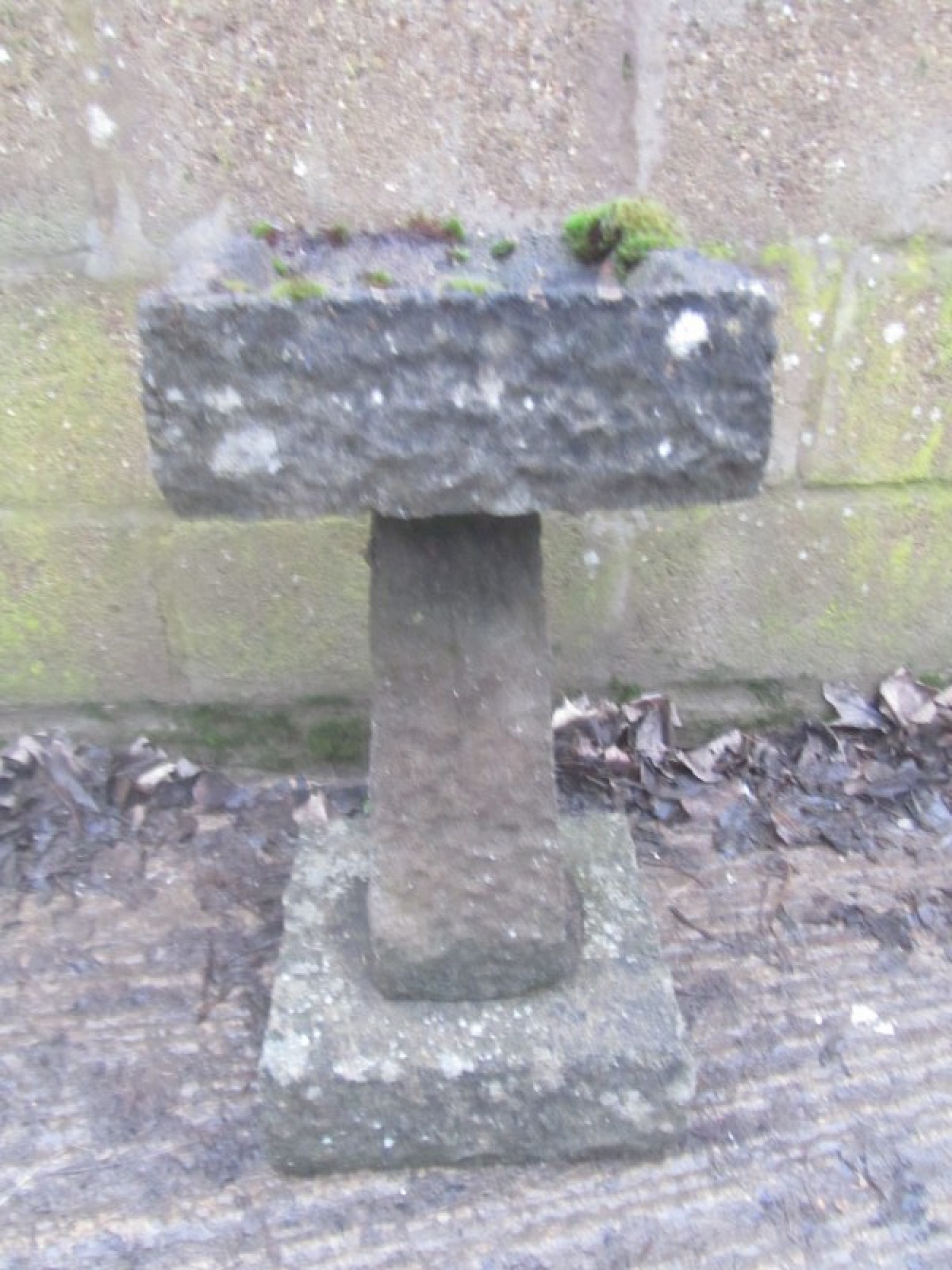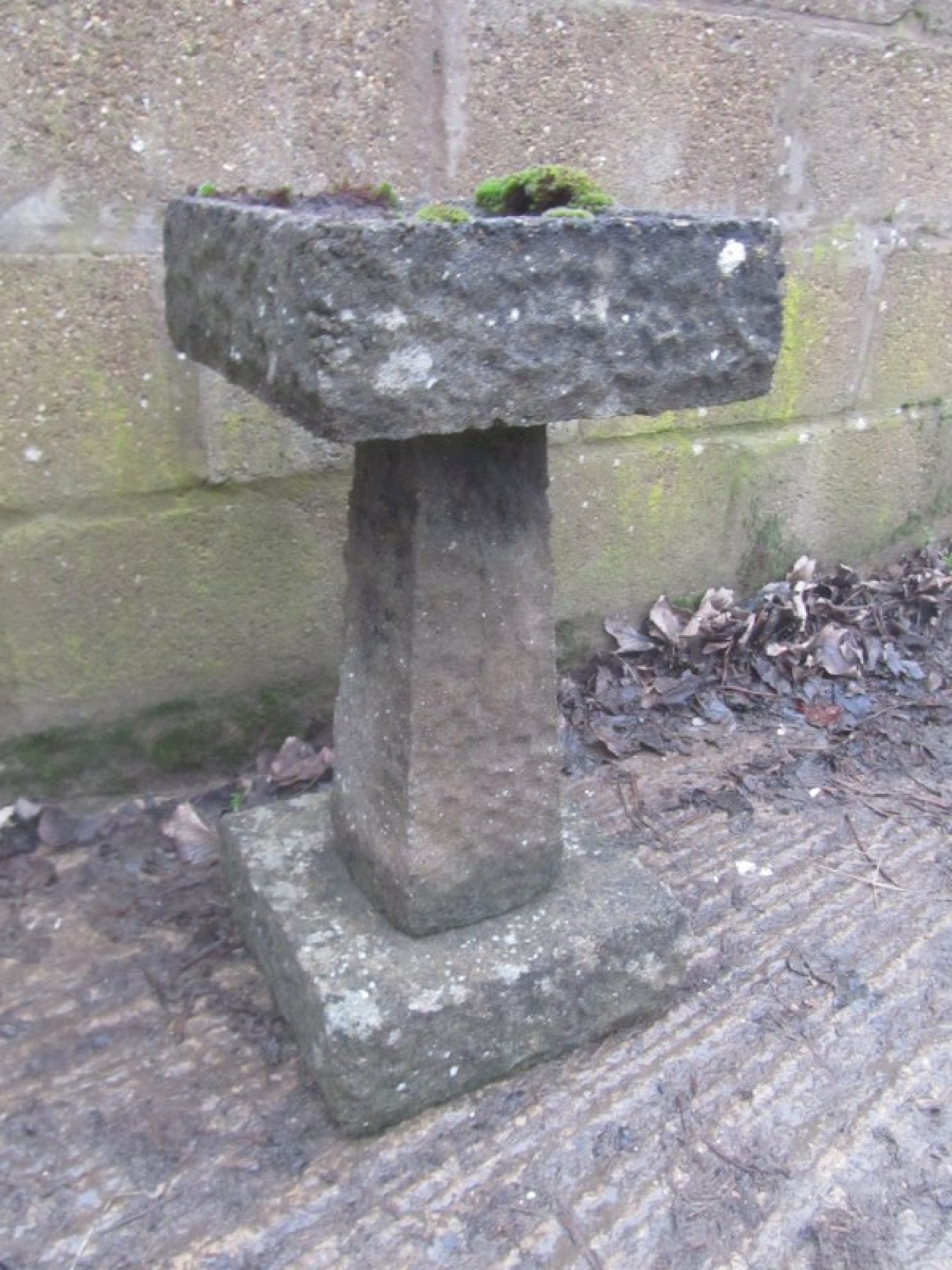 A CAST STONE BIRD BATH. IT HAS BEEN OUTSIDE FOR YEARS, IT HAS A WEATHERED LOOK. PROBABLY ABOUT 20-30 YEARS OLD. SOME CHIPS AND WEAR.