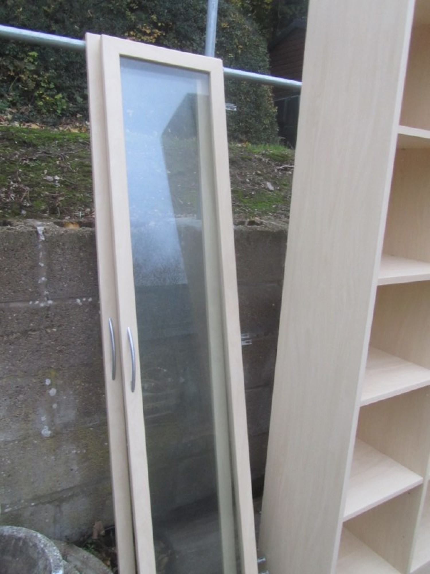 A BOOKCASE IN A BEECH EFFECT FINISH. WITH OPTIONAL GLAZED DOORS. ALL ONE PIECE, VERY HEAVY. IT COULD BE DISMANTLED.