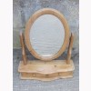 THIS IS SOLID PINE. IT IS A SMALL DRESSING TABLE MIRROR WITH DRAWER BELOW, IT SITS ON A TABLE TOP. SOME WEAR.