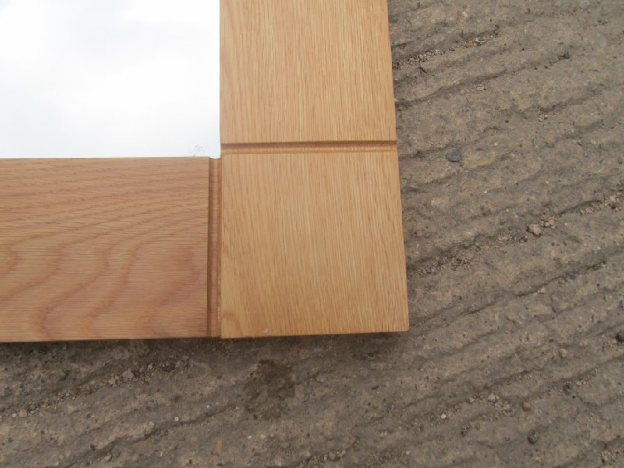 A LARGE OVERMANTLE OR DRESSING WALL MIRROR. OAK FRAME, GOOD QUALITY MIRROR.