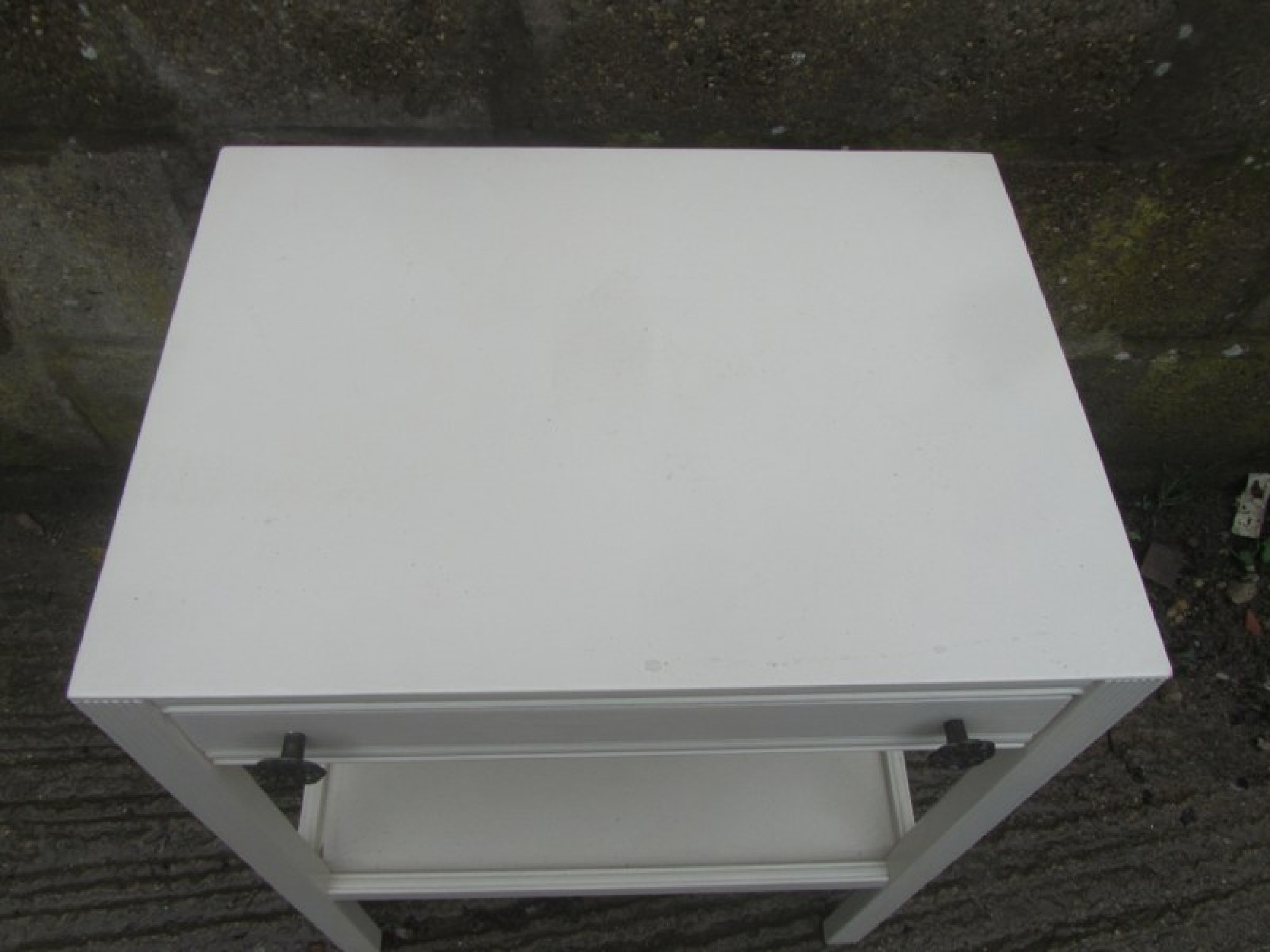 A SIDE / COFFEE TABLE WITH A PAINTED FINISH. STRONG AND STURDY, SOME MARKS AND WEAR. THIS ITEM HAS COME FROM A SMOKERS HOUSE IT MAY HAVE SOME LIGHT SURFACE STAINING AND HAS A SMELL OF CIGARETTE SMOKE, THIS WILL FADE OVER TIME; CLEANING PRODUCTS WILL HELP TO CLEAR THE SMELL. HENCE THE PRICE.