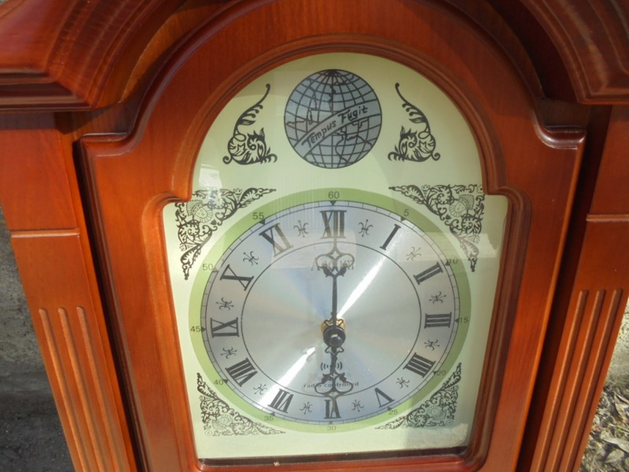 A SMALL WOOD COLOURED PLASTIC WALL CLOCK. IT REQUIRES A BATTERY, THE PENDULAM SWINGS TO GIVE THE LOOK OF AN ANTIQUE CLOCK. IN WORKING ORDER. IN AN ANTIQUE STYLE, BUT MADE FROM PLASTIC!