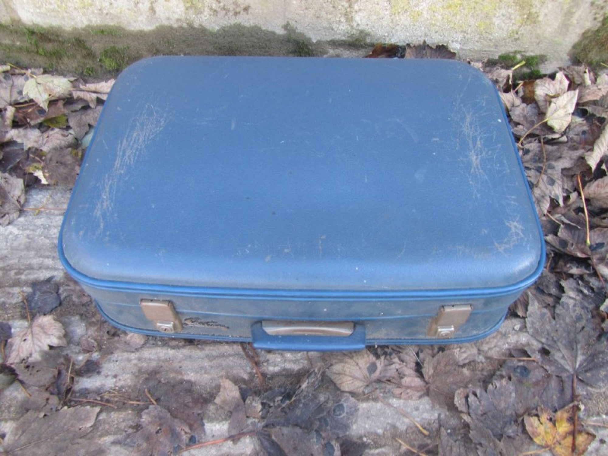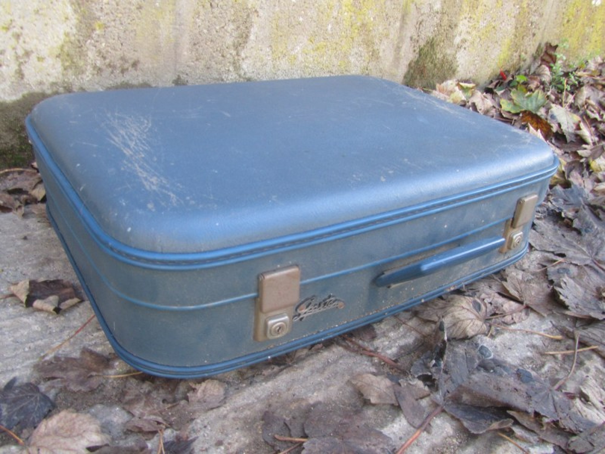 THIS IS A VINTAGE SUITCASE FROM THE 1950s/60s. IT IS VINYL. THE CATCHES ARE OLD METAL, THEY ARE STIFF, BUT DO WORK. NEEDS A CLEAN. IT IS IN AVERAGE CONDITION. LINING INSIDE. DENTED AND WORN.