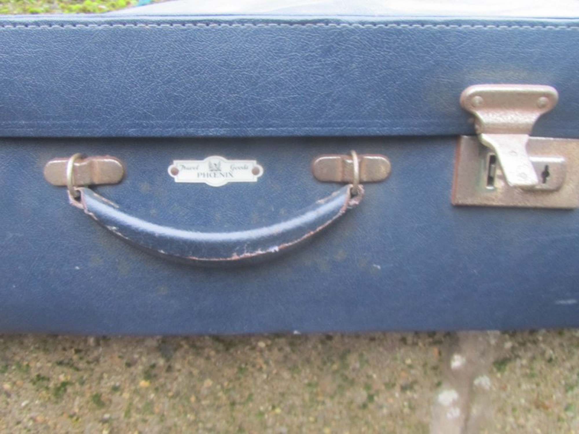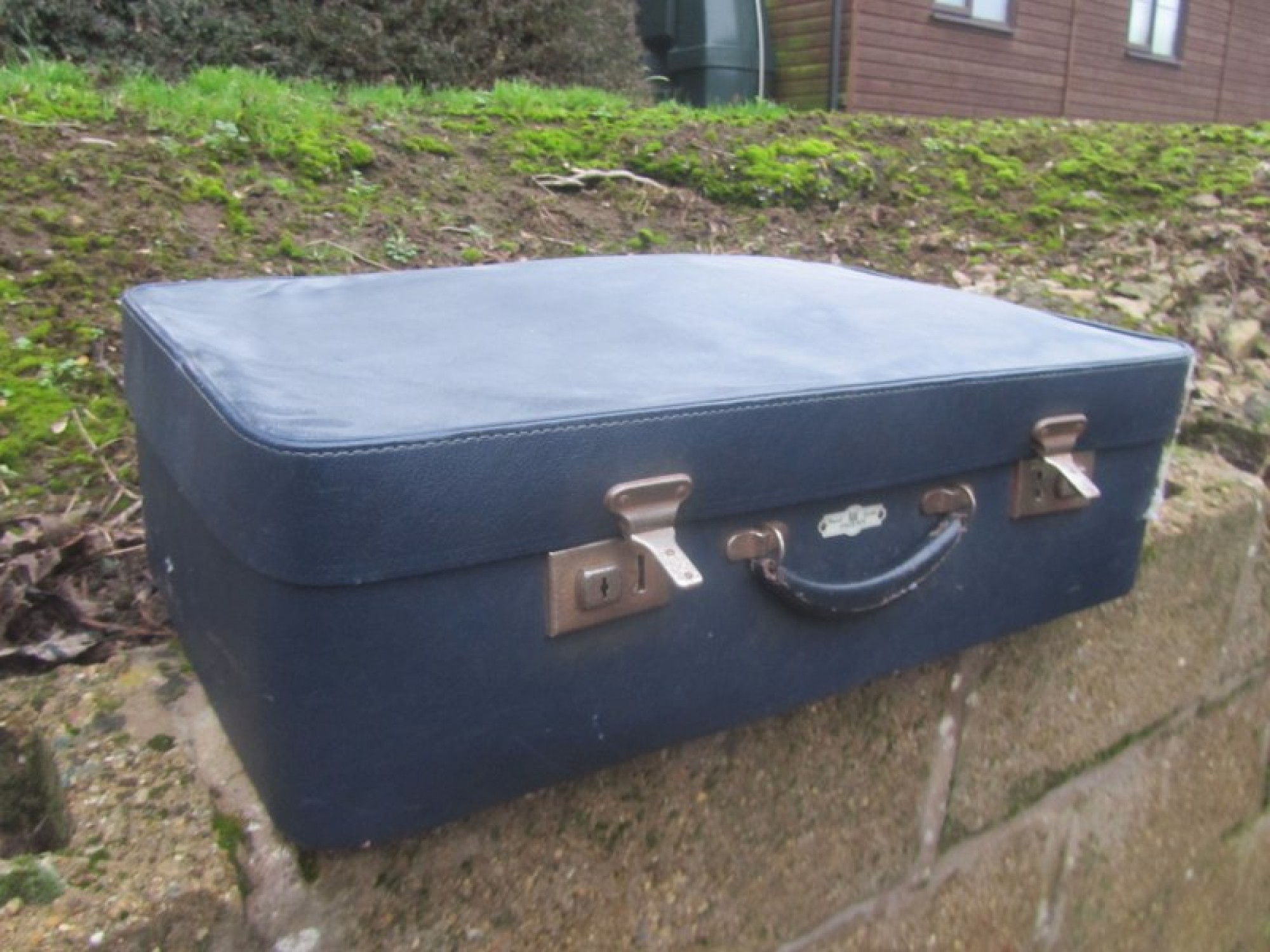 THIS IS A VINTAGE SUITCASE FROM THE 1950s/60s. IT IS VINYL. THE CATCHES ARE OLD METAL, THEY ARE STIFF, BUT DO WORK. NEEDS A CLEAN. IT IS IN AVERAGE CONDITION.