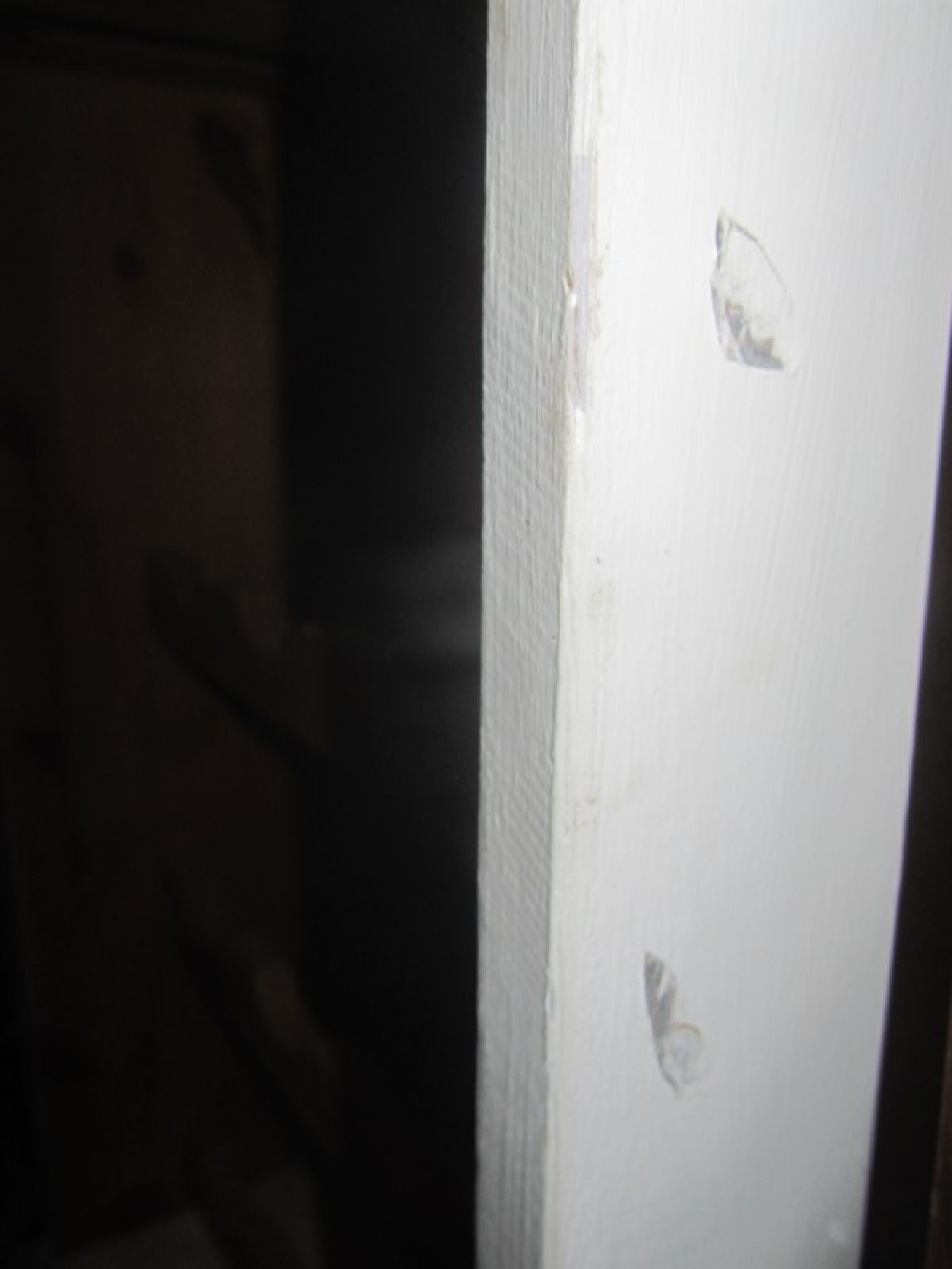 A TALL CABINET MADE FROM SOLID PINE. STRONG AND STURDY. PAINTED WHITE. SOME DENTS ON THE RIGHT HAND SIDE.