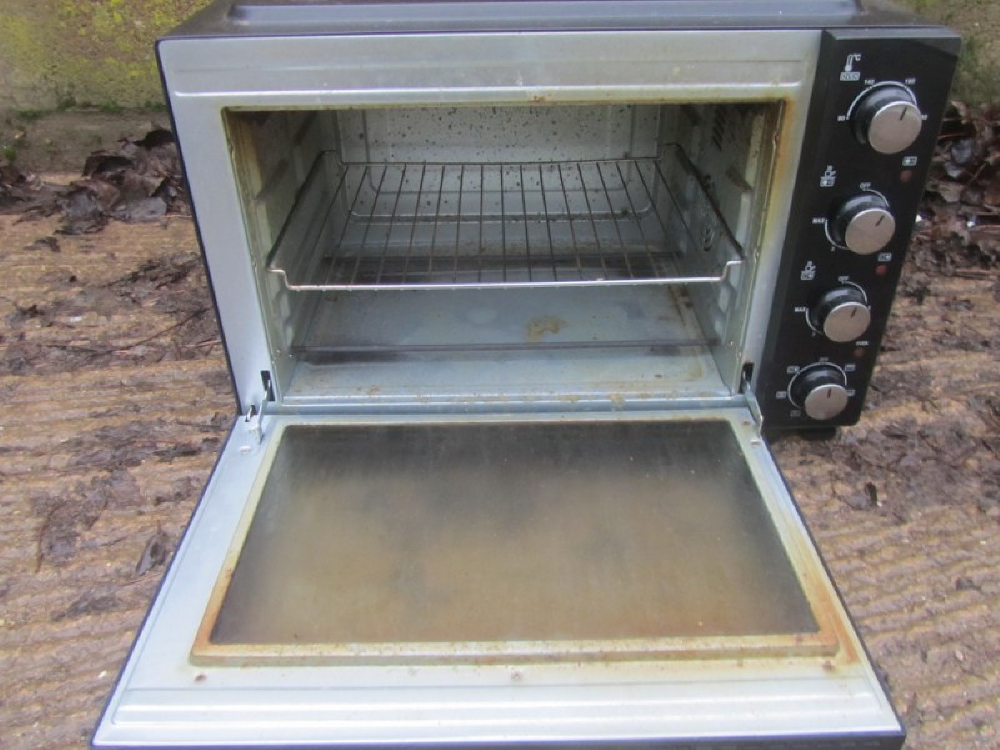 A COMPACT OVEN TO SIT ON A WORK TOP. WORKS ON MAINS PLUG. A SIMPLE ELECTRIC GRILL / OVEN WITH 2 CERAMIC RINGS ON TOP. IDEAL FOR ONE PERSON TO COOK PIES, CHIPS etc. IT NEEDS A CLEAN. IT IS A CURRENT MODEL AND RETAILS AT £190.