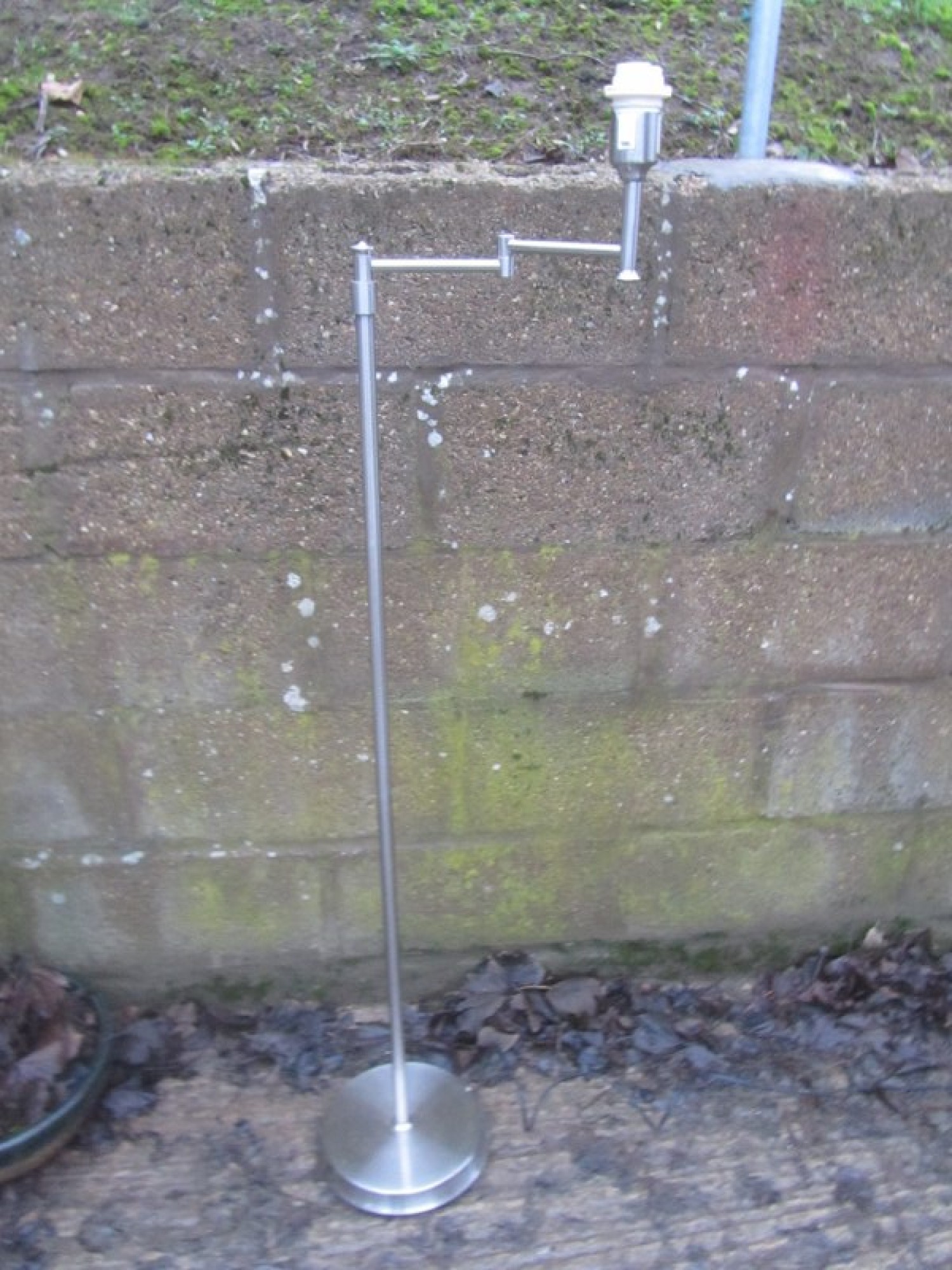 A TALL METAL LAMP. AN ATTRACTIVE AND STYLISH LAMP, IDEAL FOR ANYWHERE IN THE HOME. IT TAKES A STANDARD BAYONET BULB. WITH ADJUSTABLE SWING LIGHT. SOME WEAR AND LIGHT RUST TO THE BASE.