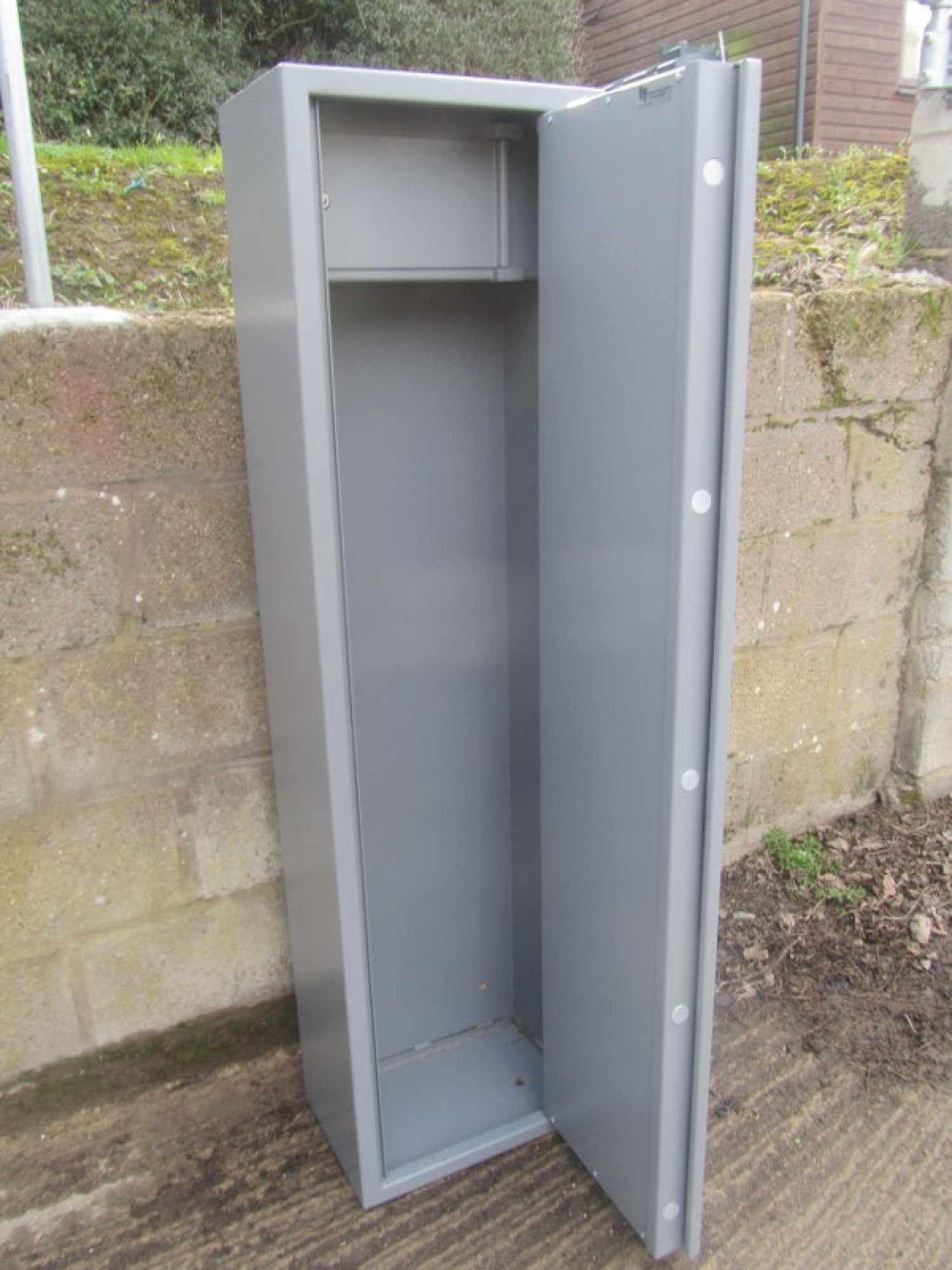 Items for Sale TALL METAL / STEEL CABINET / LOCKER & KEY Share: View Larger Image View Larger Image View Larger Image View Larger Image View Larger Image View Larger Image View Larger Image Select to enlarge Swipe £ 65 THIS IS A METAL CABINET IN A GREY FINISH. IT HAS A MORTICE LOCK WITH 1 KEY, SEVERAL LOCKING POINTS. THE LOCK WORKS AND IT GIVES SAFE AND SECURE STORAGE. INSIDE IT HAS AN INTERNAL LOCKABLE CABINET AT THE TOP, WITH KEY. IT IS IN GOOD CONDITION. ADDITIONAL DETAILS RESERVE ITEM Condition:GOOD Manufacture Date:2000s Height:152 cms Length:40 cms Depth:27 cms Quantity:1 Item Number:41296 * Please complete all the fields below to send an enquiry about this product. Please reserve this item for me… Reset Send