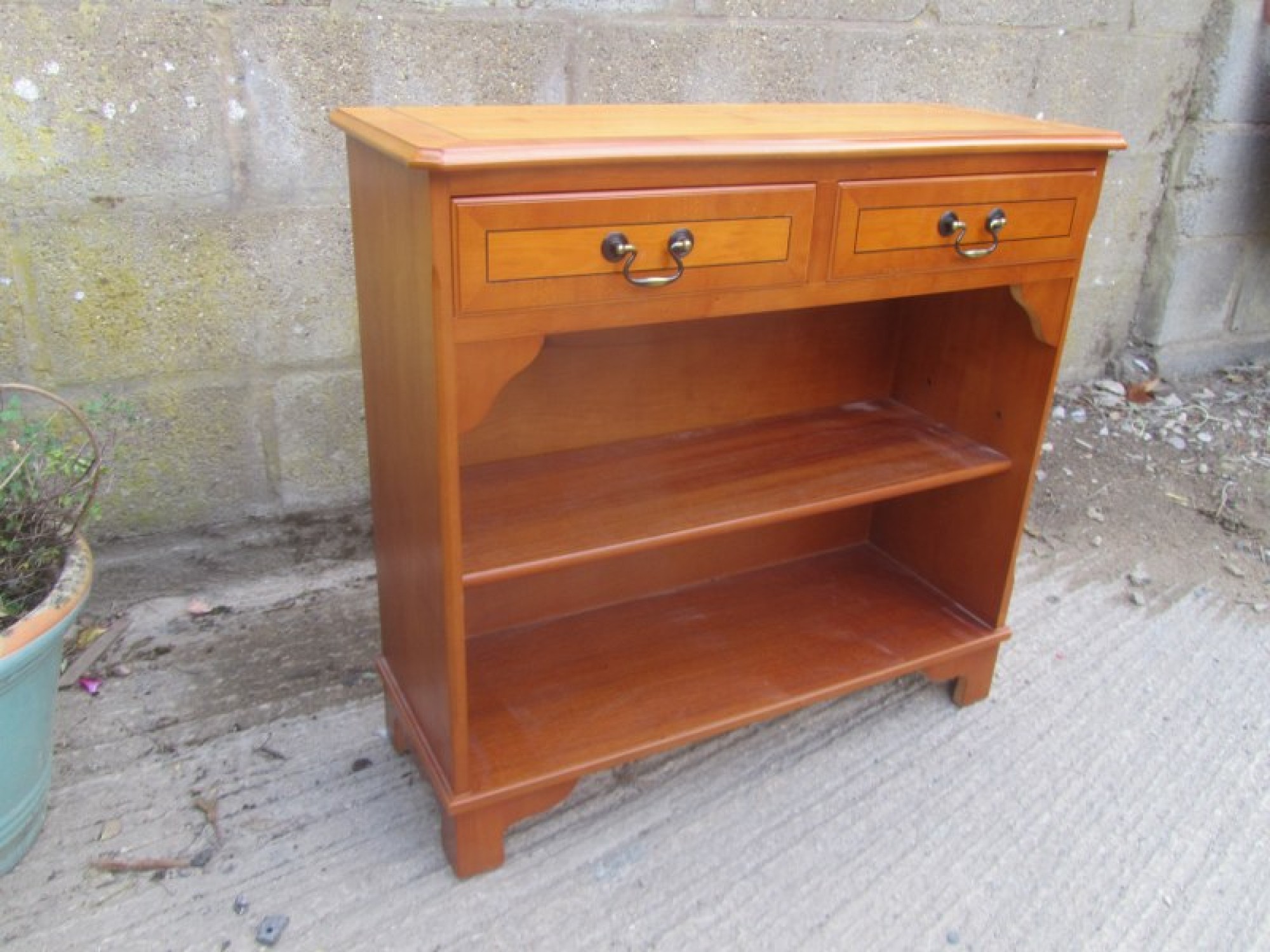 THIS IS A YEW VENEERED BOOKCASE. THIS HAS ADJUSTABLE SHELVING, IDEAL FOR STORING BOOKS, DISPLAYING ITEMS etc. AN ATTRACTIVE BOOKCASE IN GOOD CONDITION, SOME LIGHT WEAR AND TEAR. A GOOD QUALITY ITEM.