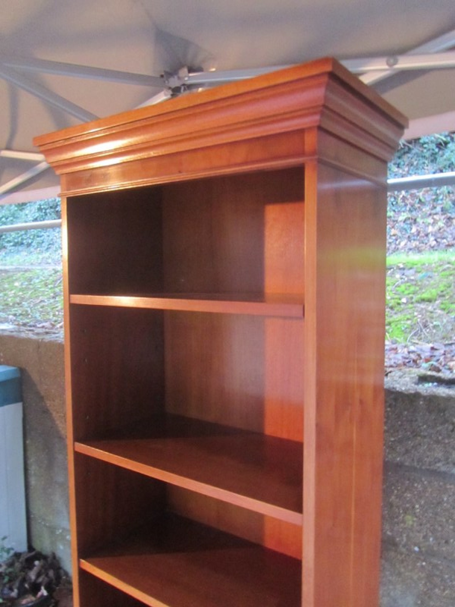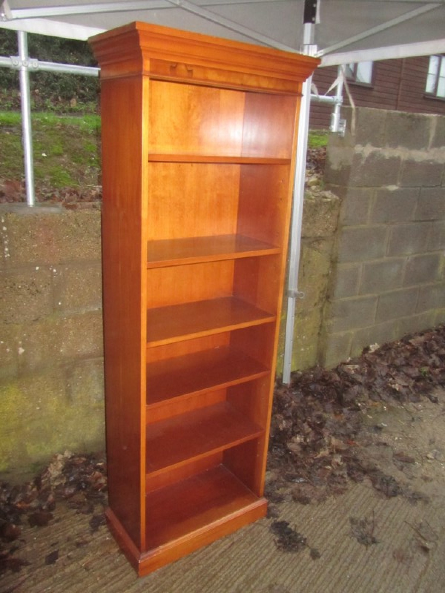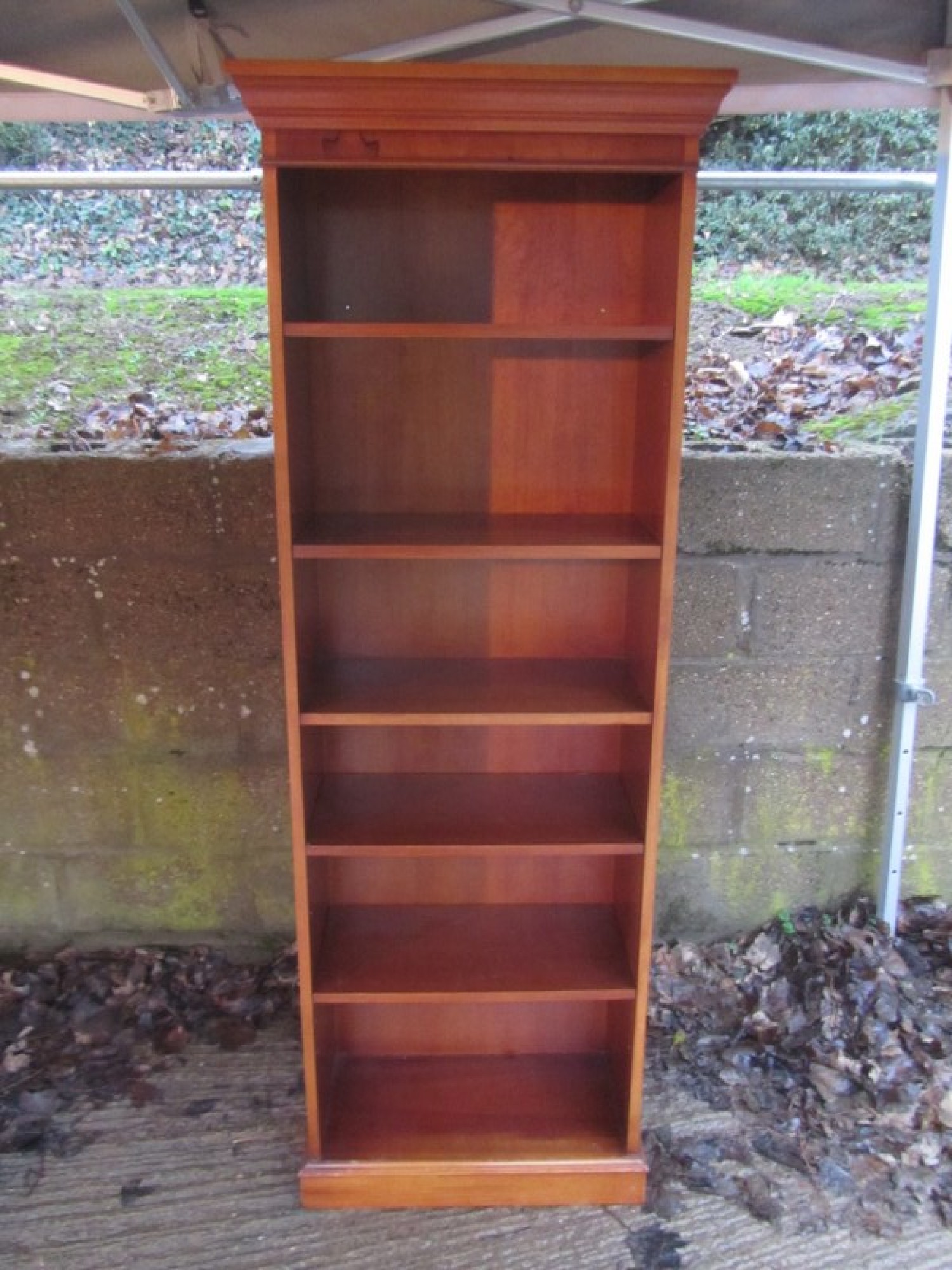 THIS IS A LARGE YEW VENEERED BOOKCASE. THIS HAS ADJUSTABLE SHELVING, IDEAL FOR STORING BOOKS, DISPLAYING ITEMS etc. AN ATTRACTIVE BOOKCASE IN GOOD CONDITION, SOME LIGHT WEAR AND TEAR. A GOOD QUALITY ITEM.